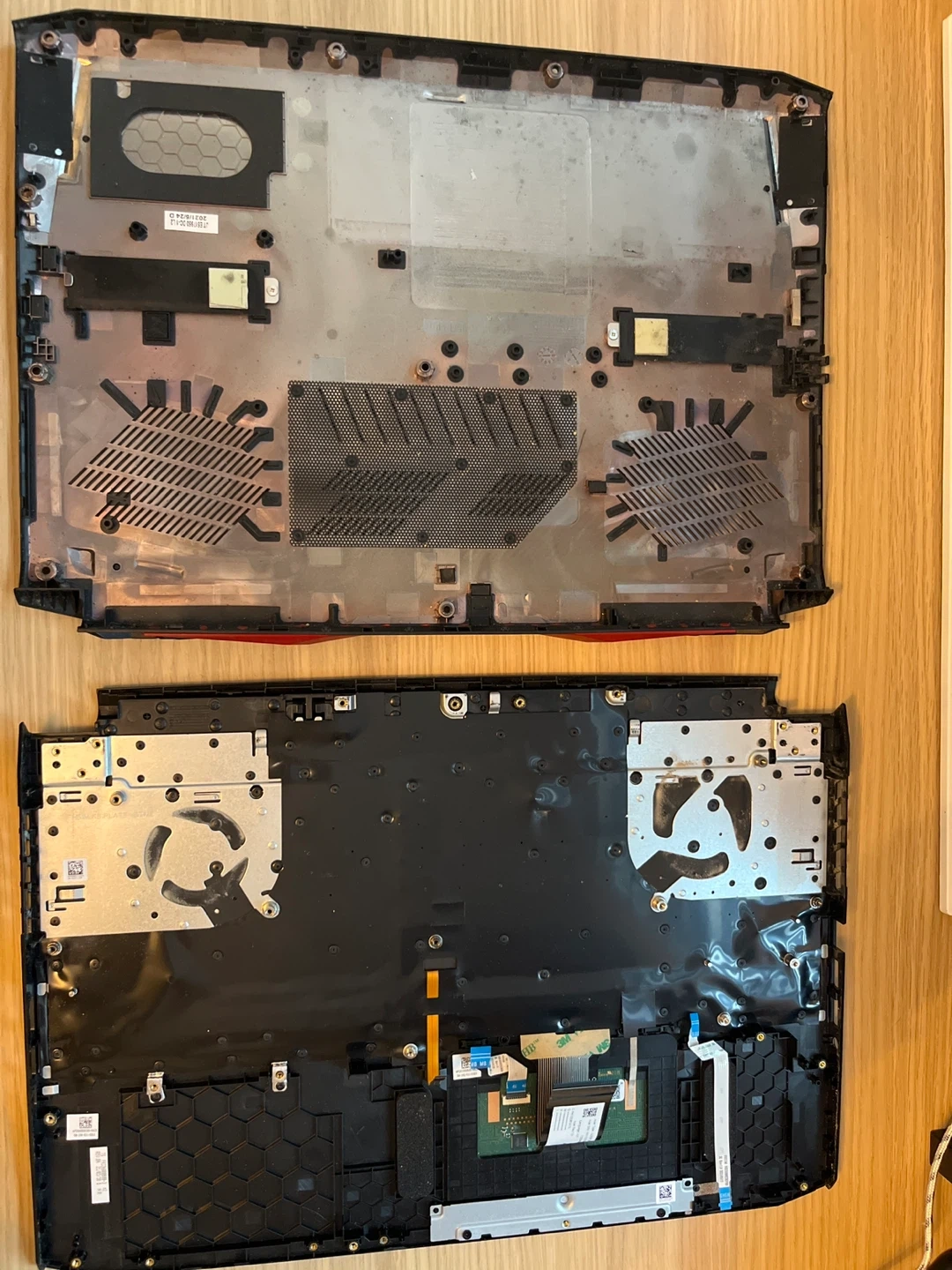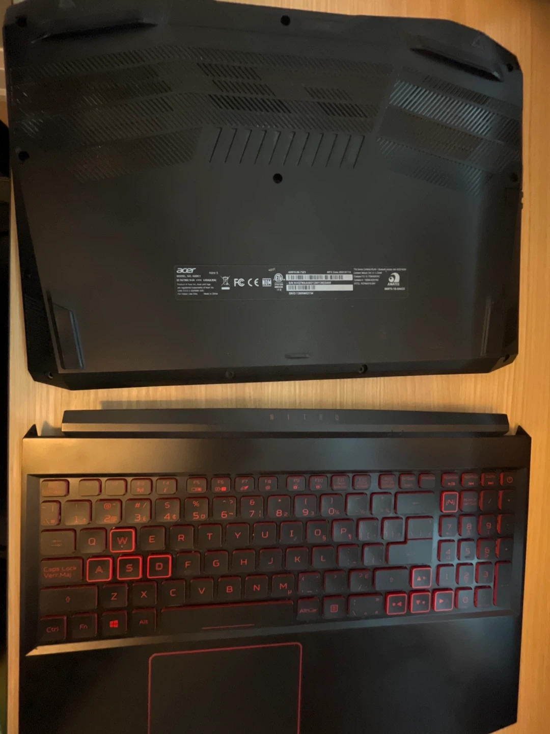 Includes a keyboard with a red backlight, palmrest, touchpad and a camera.