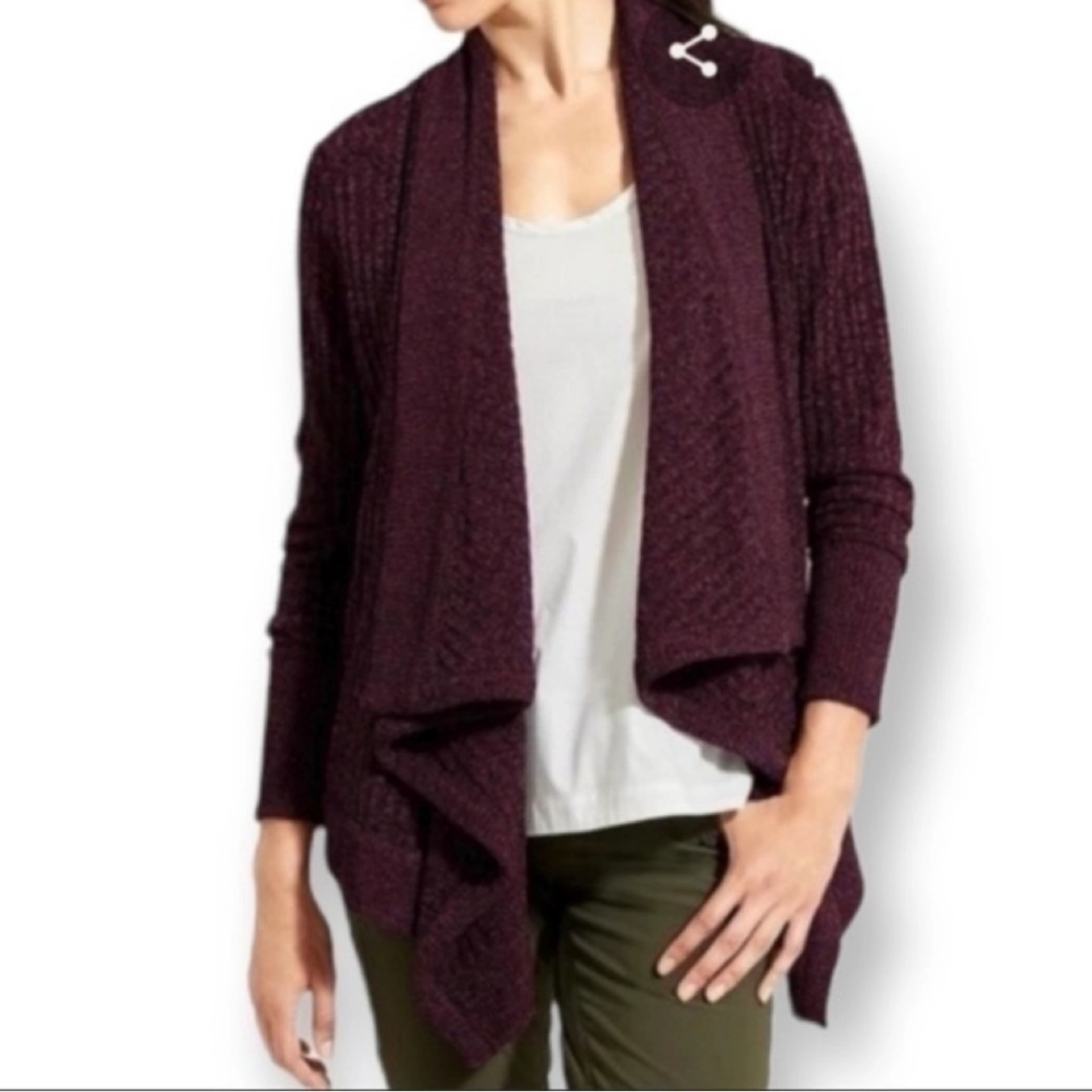 Athleta Tiburon Ribbed Knit Waterfall Open Cardigan Size M