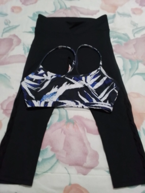 65Selling a comfy athletic set! Includes black leggings and a fun patterned top. Perfect for workouts or lounging around at home