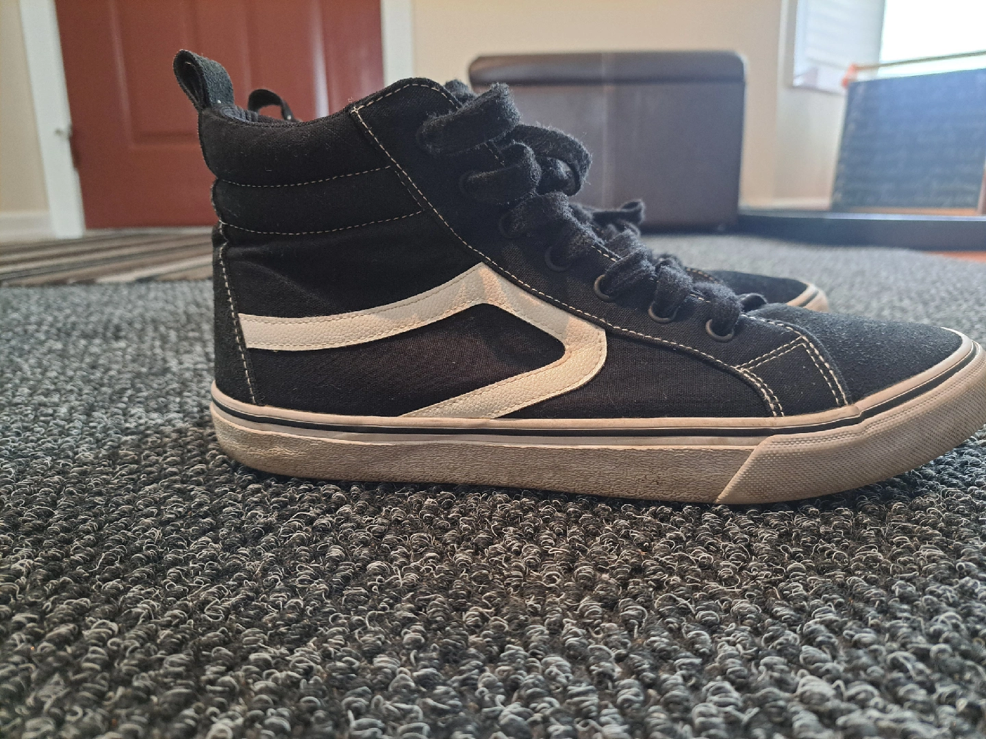60Selling a pair of Athletic Works high-top sneakers in black! They're in excellent condition and perfect for everyday wear. The size is 9. Shoe is surprisingly comfortable.