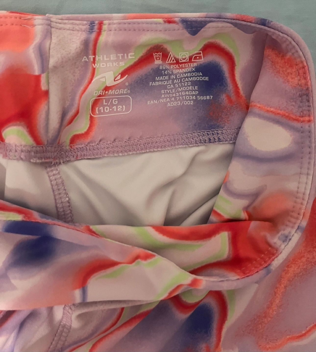 Brand new.These Athletic Works girls' shorts are size L/G (10-12). The shorts have a cool, colourful pattern.Cash only
