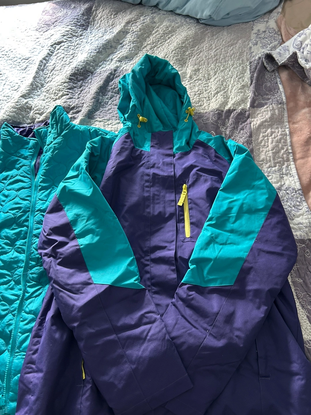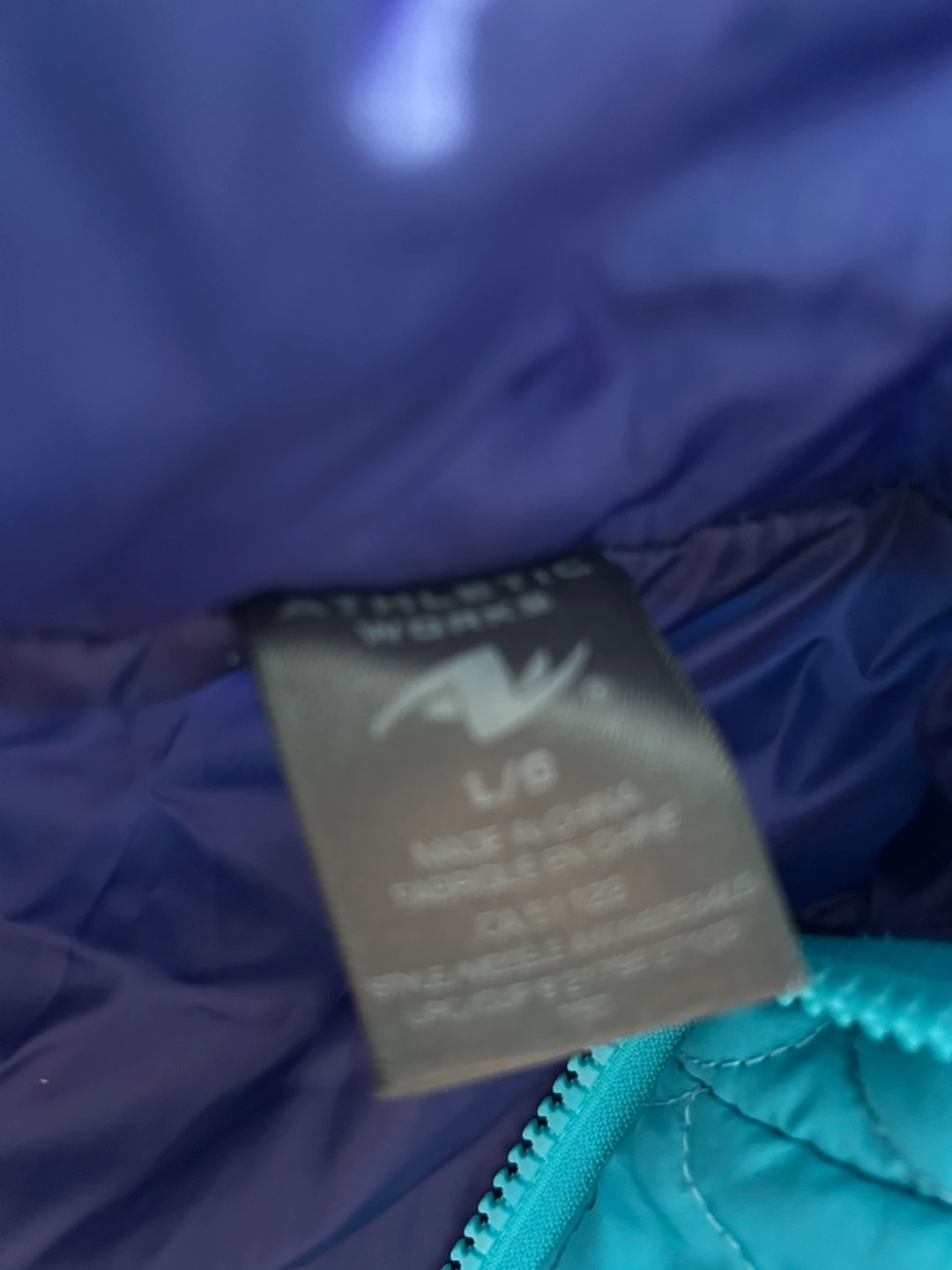70Women's Athletic Works two-piece winter jacket set. Size large. Includes a teal quilted liner and a teal and purple hooded outer shell. Great for layering or wearing separately. Willing to meet or deliver. Never used tag removed already