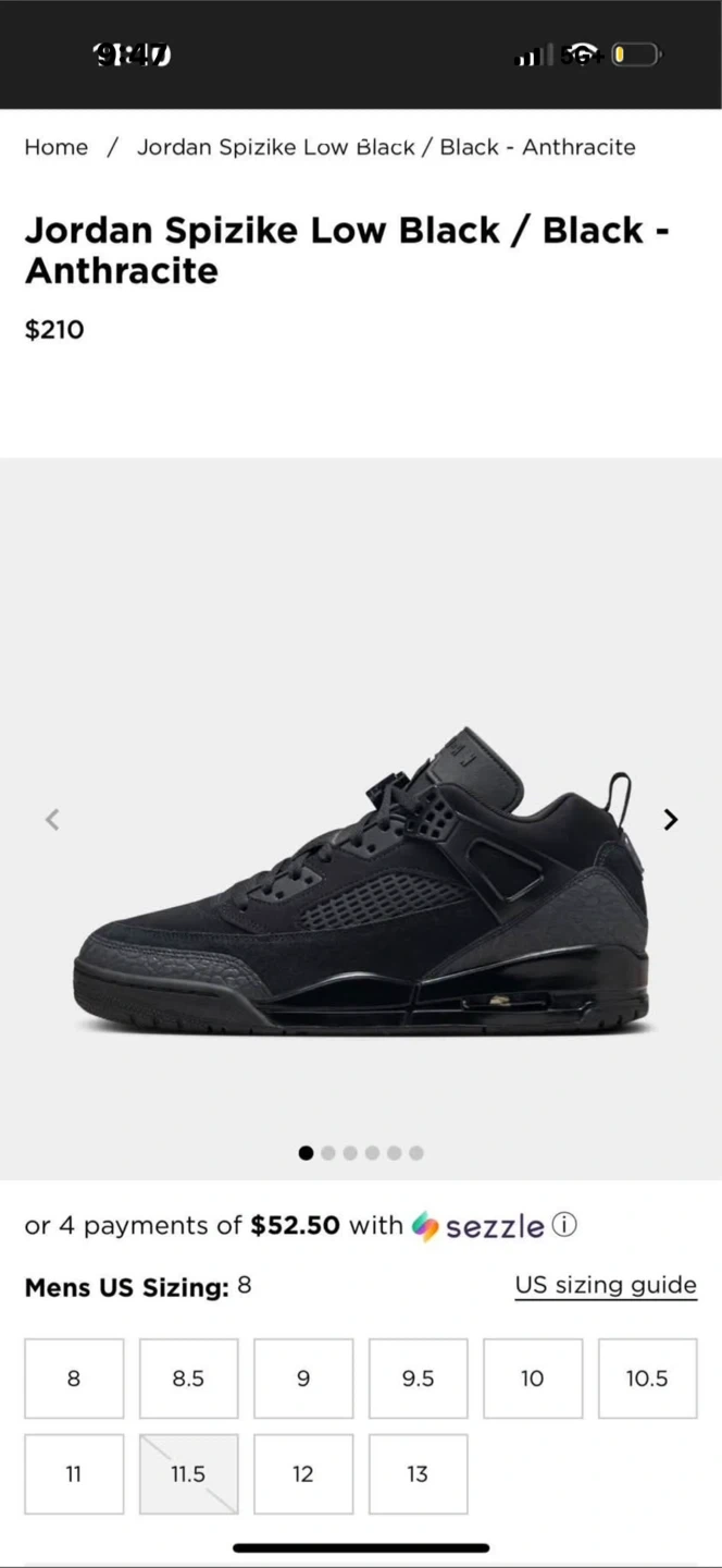 Jordan Spizike Low Black Anthracite Men's Shoes Size 8