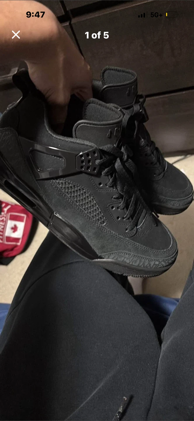These are Jordan Spizike Low sneakers in a black and anthracite colorway. They feature a mix of suede and synthetic materials. These shoes are a men's size 8.
