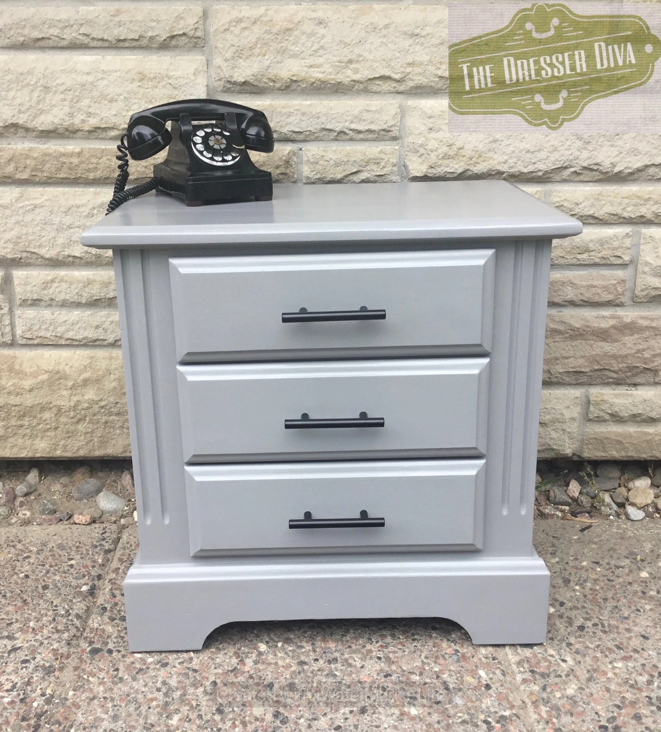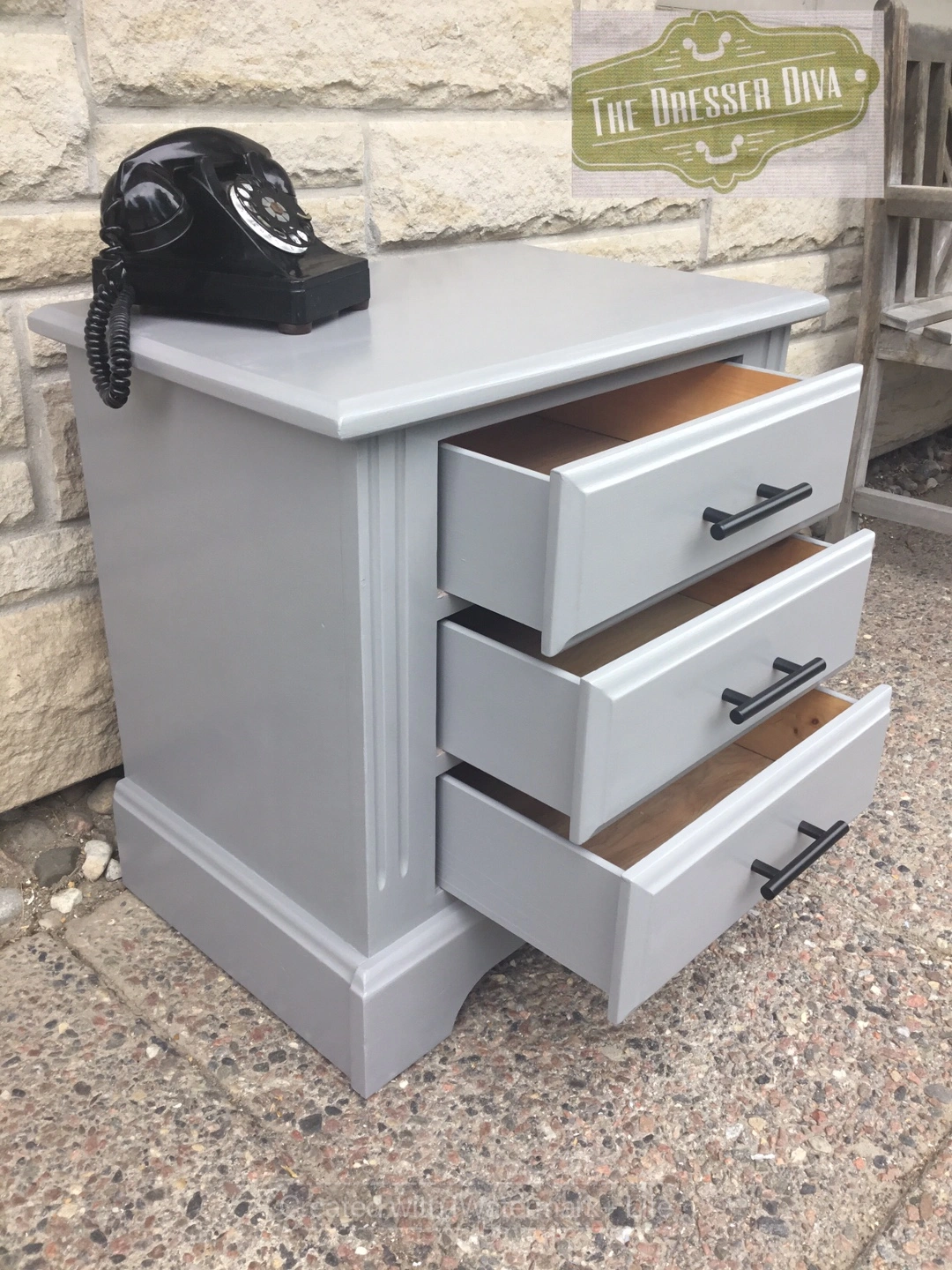 Selling a cute grey bedside table with three drawers! It has a clean look with black handles. Perfect for storing your nighttime essentials right by your bed