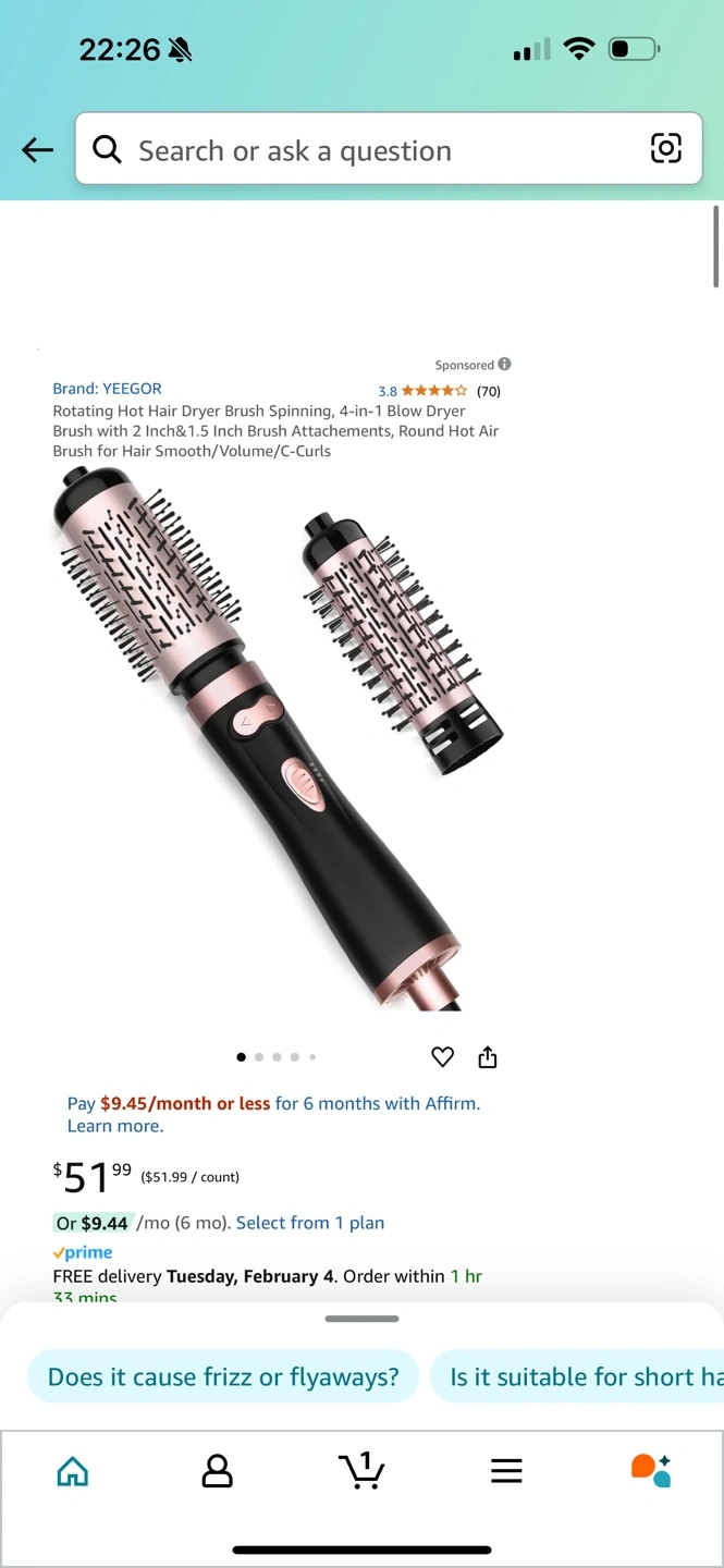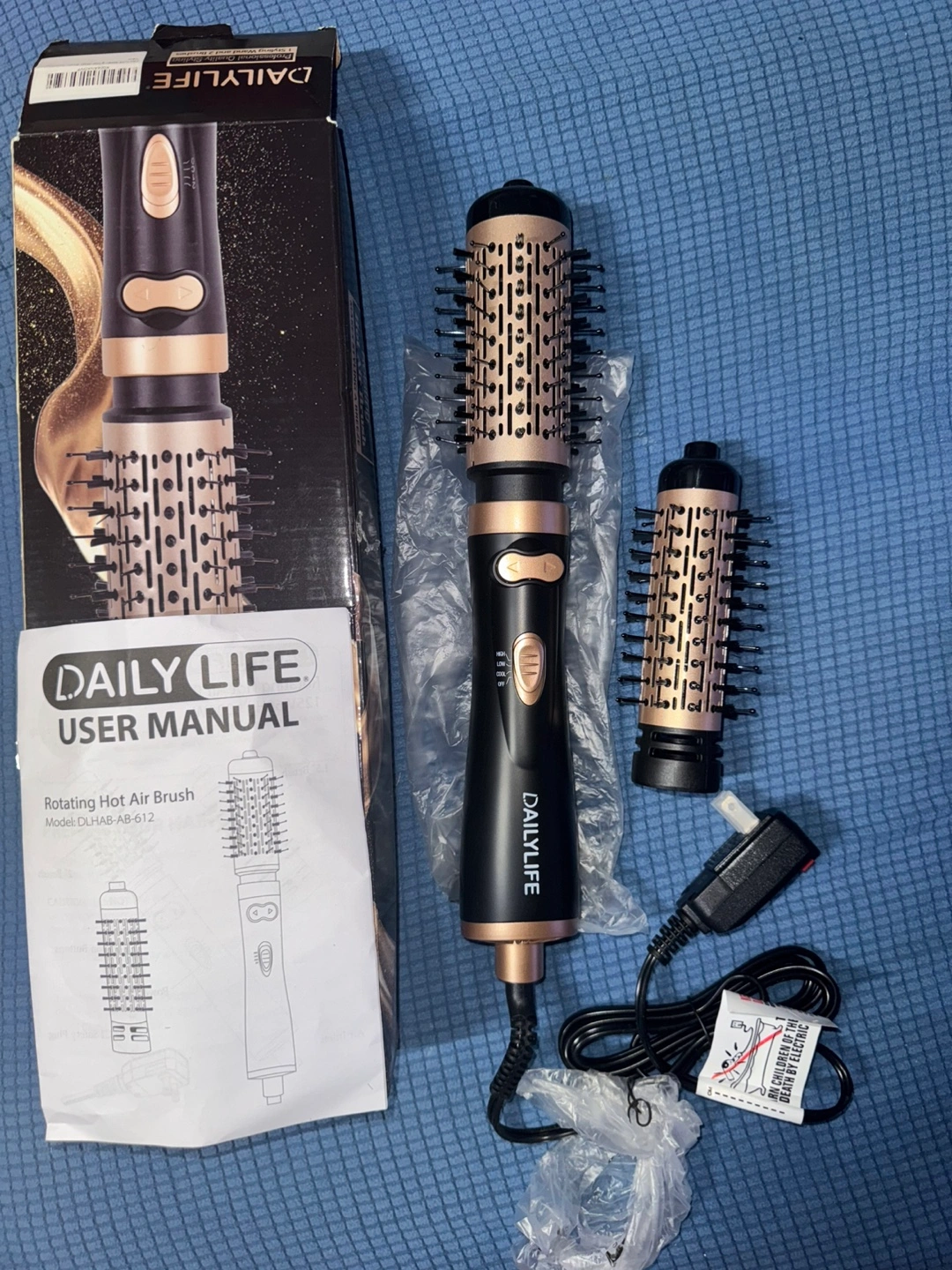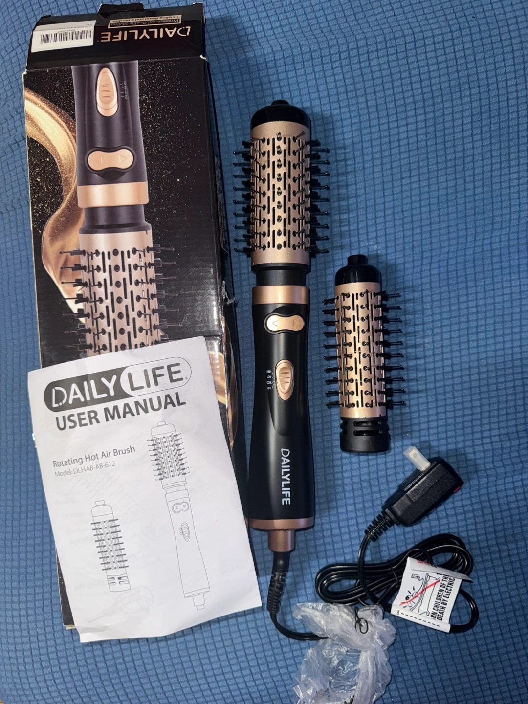 Rotating hot air brush. Two interchangeable brush heads. Includes power cord and instruction manual. Model DC-HB40-01
