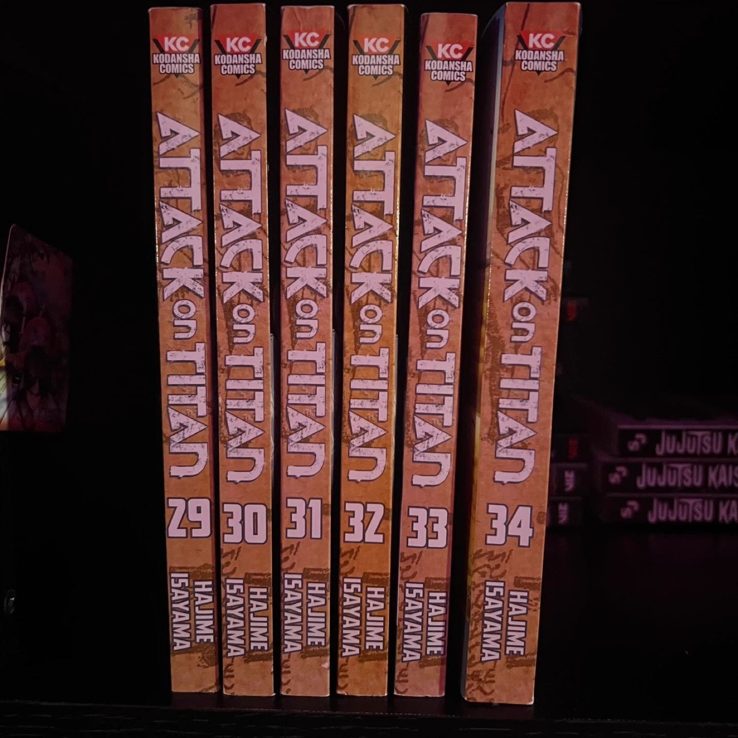 5Selling Attack on Titan manga volumes 29 through 34. They're all in great shape and ready for a new reader! Perfect for completing your collection or diving into the final arcs of the series. Written by Hajime Isayama. Selling as a bundle. Unread. Need gone ASAP