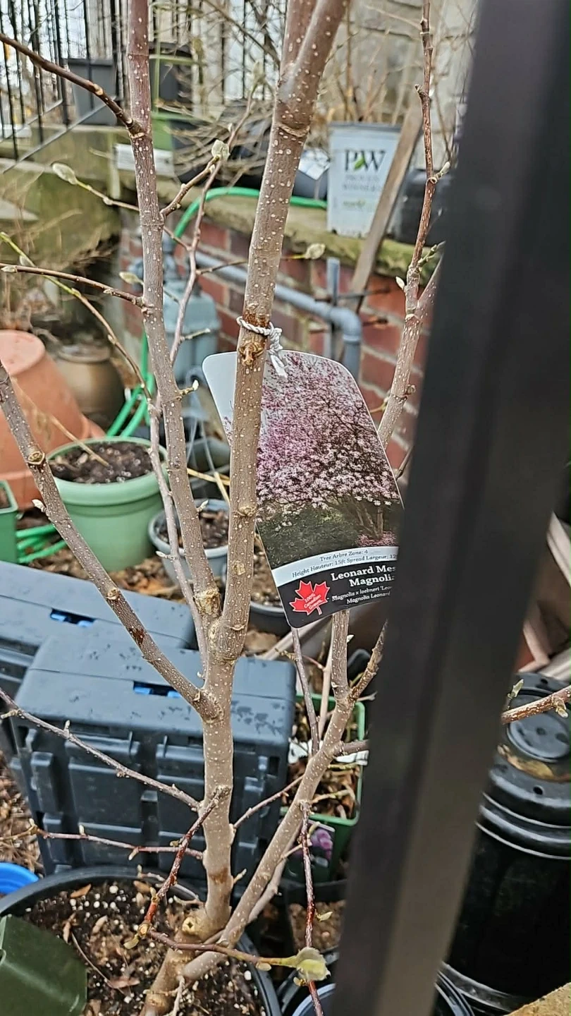 A young Magnolia tree, in 5 gallon pot beautiful pink and white blooms. This perennial shrub thrives in USDA Zones 4-8.