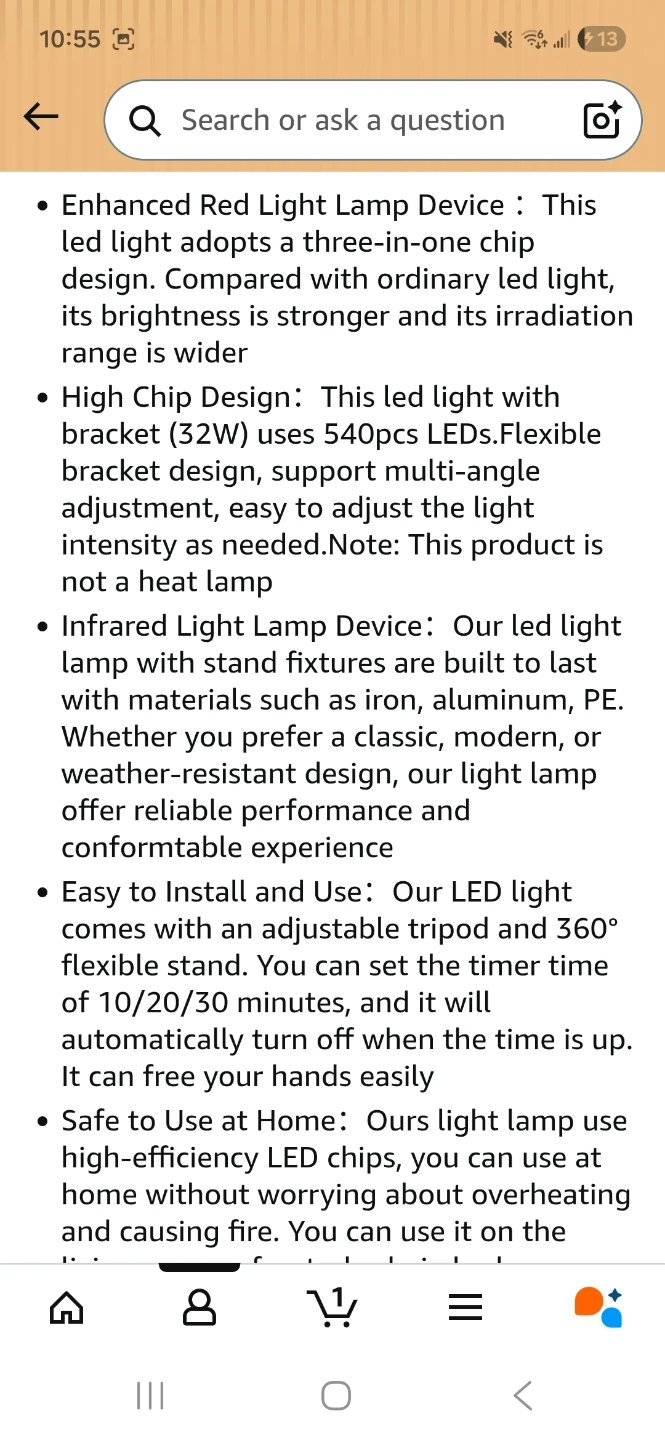 This Shinyeyou red light lamp features 180 LEDs with 850nm & 660nm wavelengths. It has a flexible tripod stand adjustable from 15" to 60" tall. The device uses a 3-in-1 chip design for optimal performance. It's safe for home use without worrying about overheating.