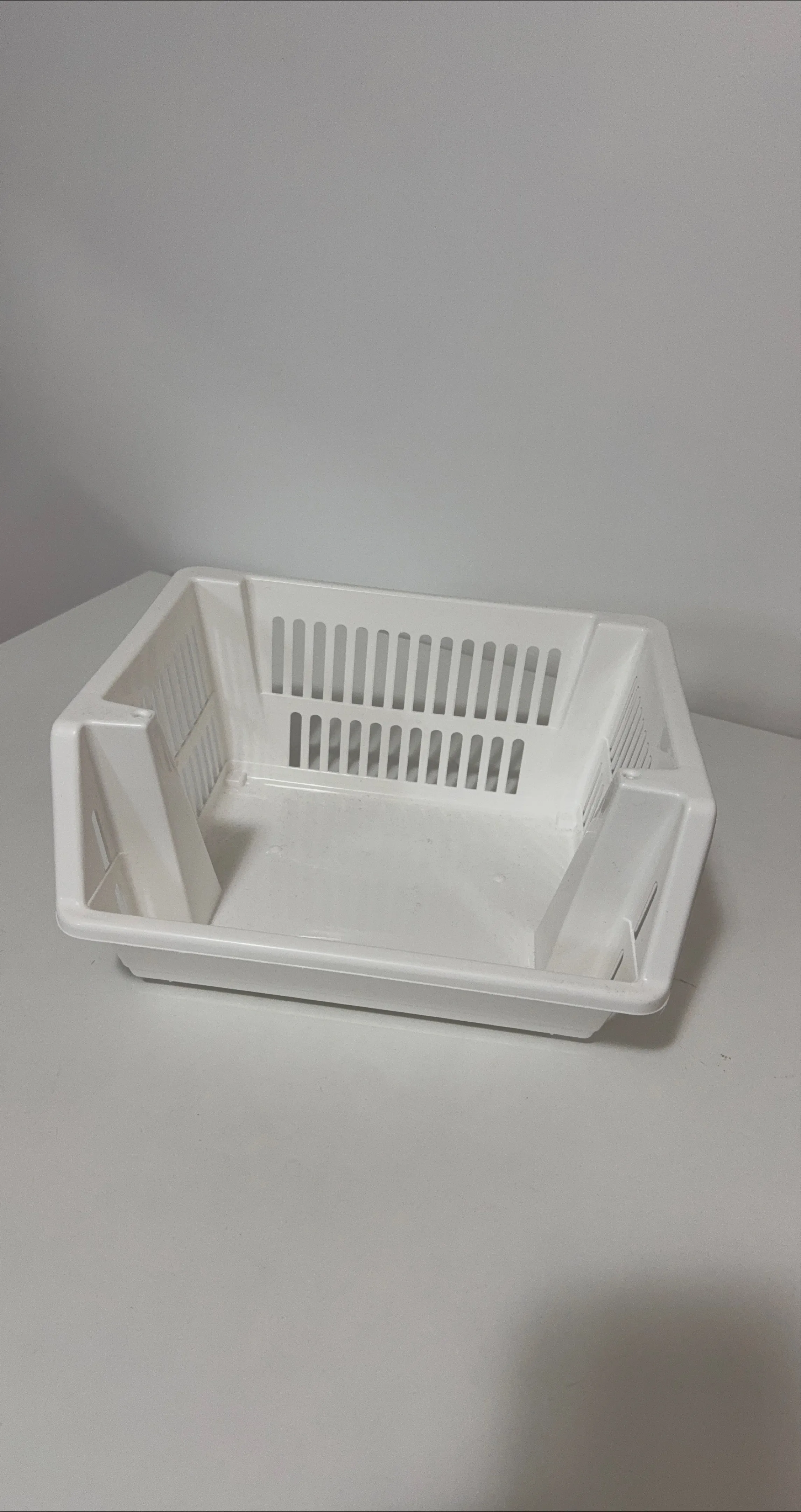 Selling a white plastic storage basket. It's in great shape and ready to help organize your space!