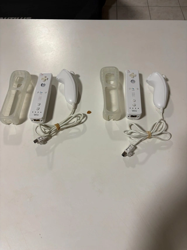 Original Wii remotes and nunchuks for sale or trade. A set includes 1 remote, 1 nunchuk, and 1 remote protector. $25 for a set. Only one set left.