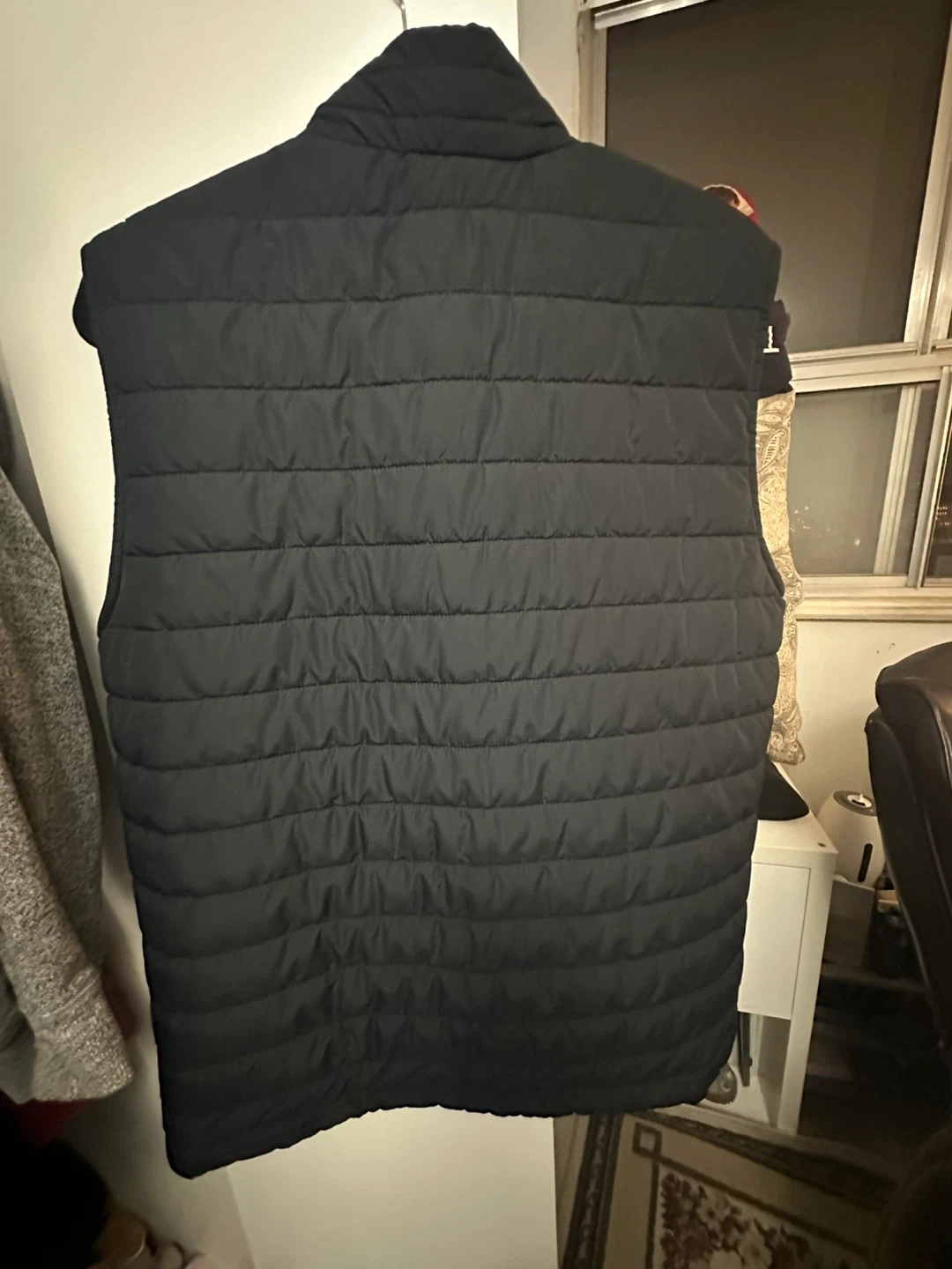 This is a black puffer vest from Mountain Ridge. It's a size M/M. It zips up the front and has two pockets.