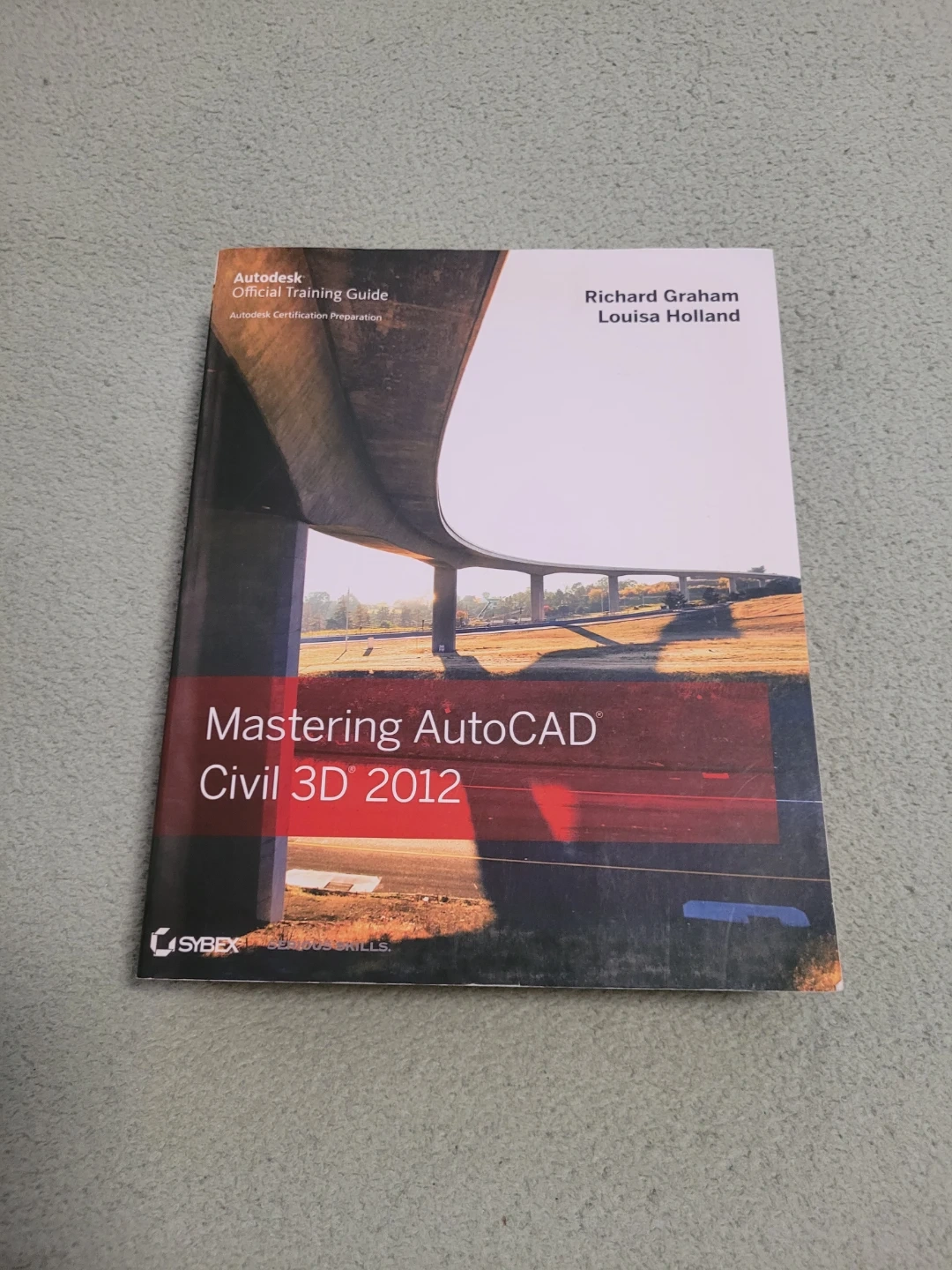 This is the Autodesk Official Training Guide for Mastering AutoCAD Civil 3D 2012. It's authored by Richard Graham and Louisa Holland. This book is designed for Autodesk Certification Preparation.