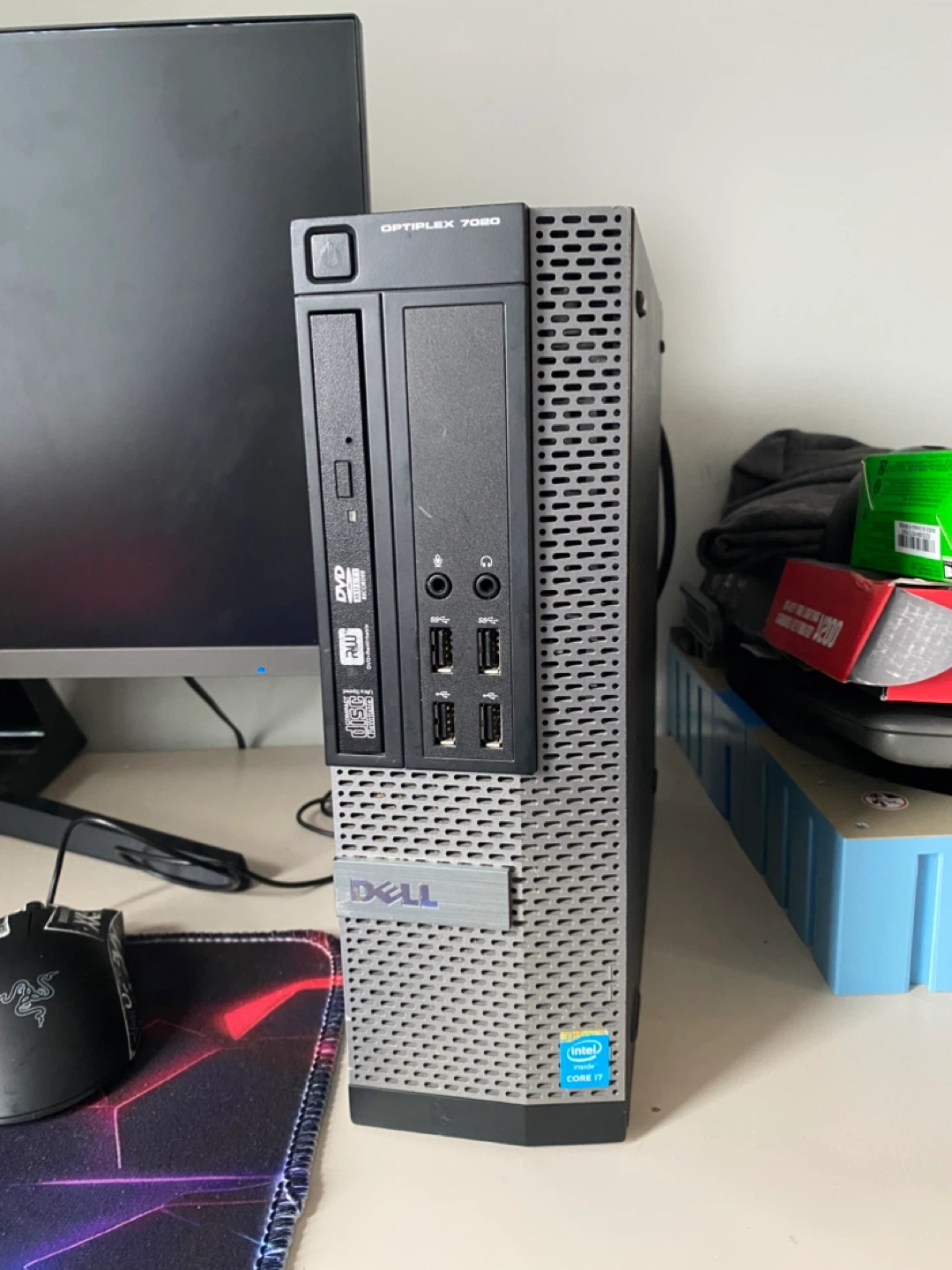 Dell OptiPlex 7020 desktop computer with DVD drive. Intel Core i7 processor. Small form factor for easy placement. This PC is ready for your work or home setup!