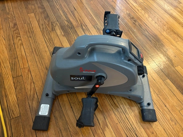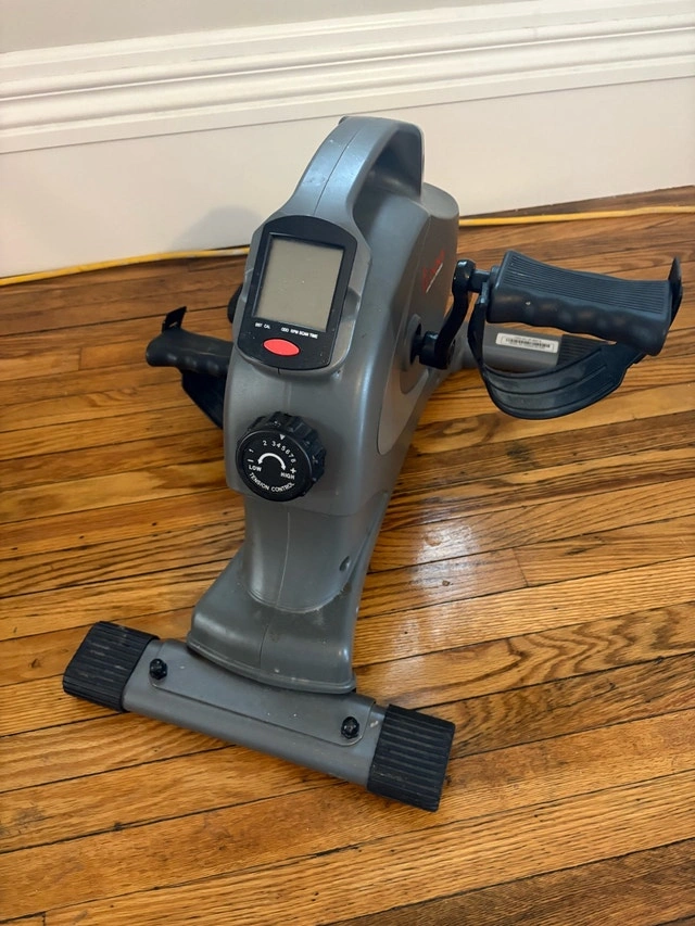 Get fit with this compact Sunny Health & Fitness mini exercise bike, perfect for home workouts and rehabilitation. This gently used peddler features adjustable magnetic resistance and a digital monitor to track your progress. Key features include: * Adjustable magnetic resistance * Digital monitor (time, distance, calories) * Compact and portable design * Non-slip pedals Ready to pedal your way to better health? Don't miss out on this “sit and peddle”, under desk, handy fitness tool! If the ad is up, it's available! Make a reasonable offer!