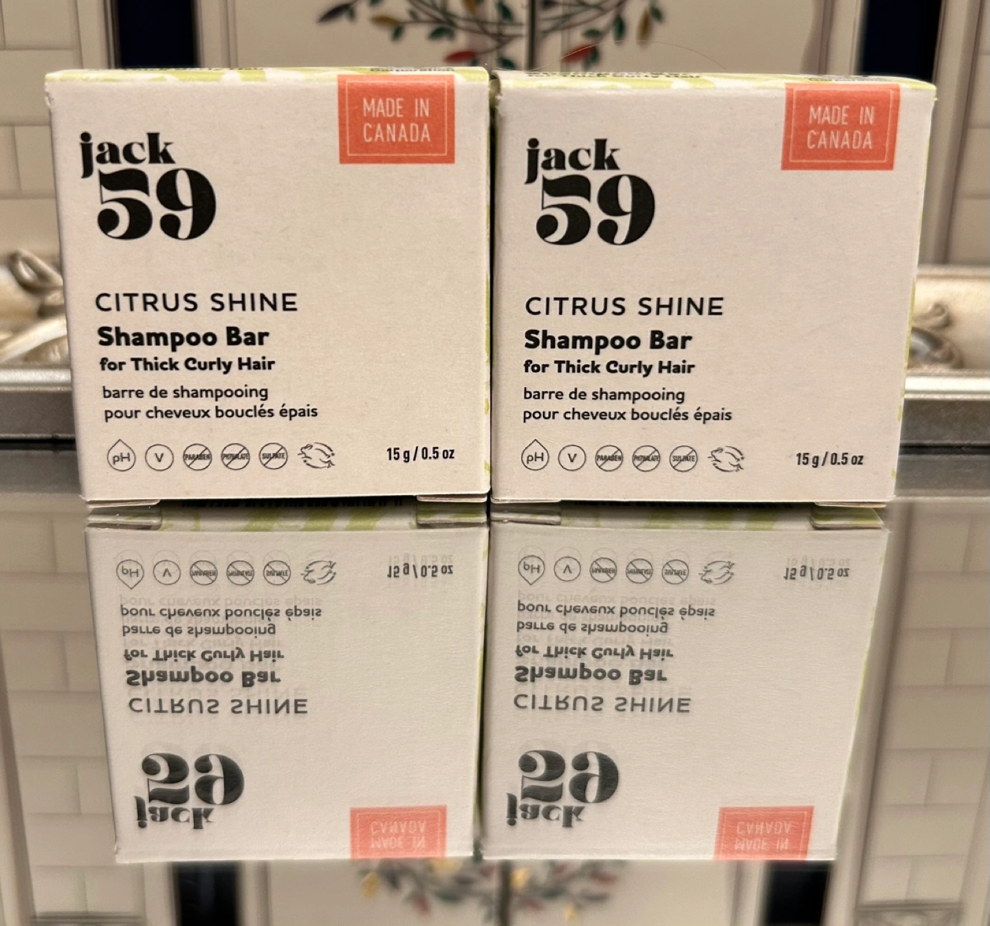 Two Jack59 Citrus Shine shampoo bars. Designed for thick, curly hair. Made in Canada. 15g/0.5 oz each. Lather in hands, apply to wet hair, rinse and repeat if necessary. Keep bar dry between uses. $10 for both! 😊
