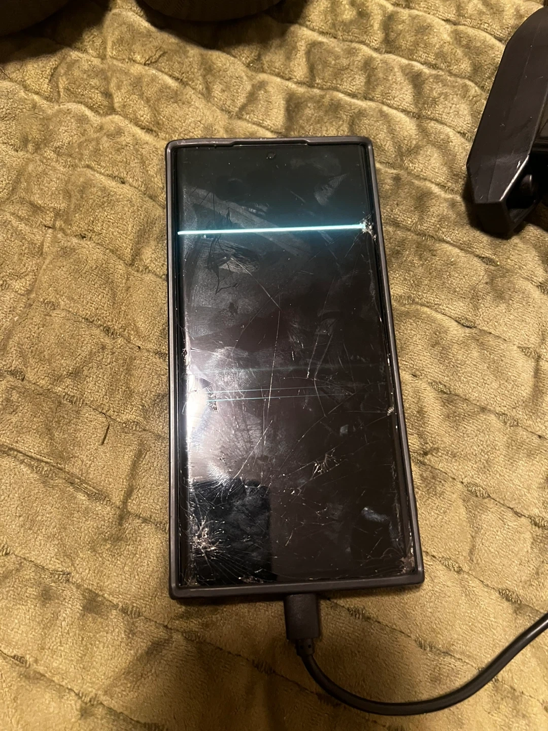 Found this Samsung phone on the bus with a cracked and glitched screen with a password on it