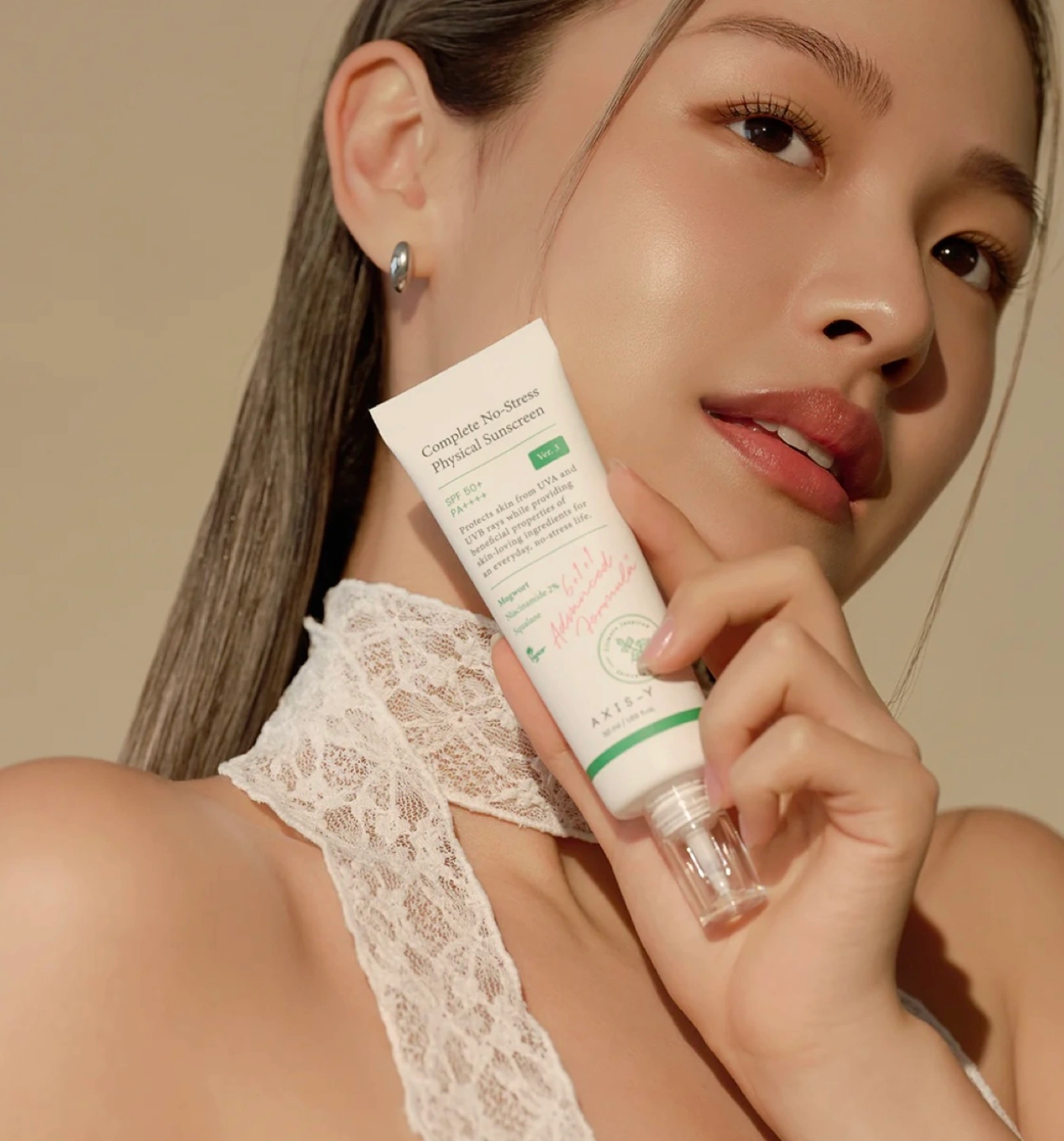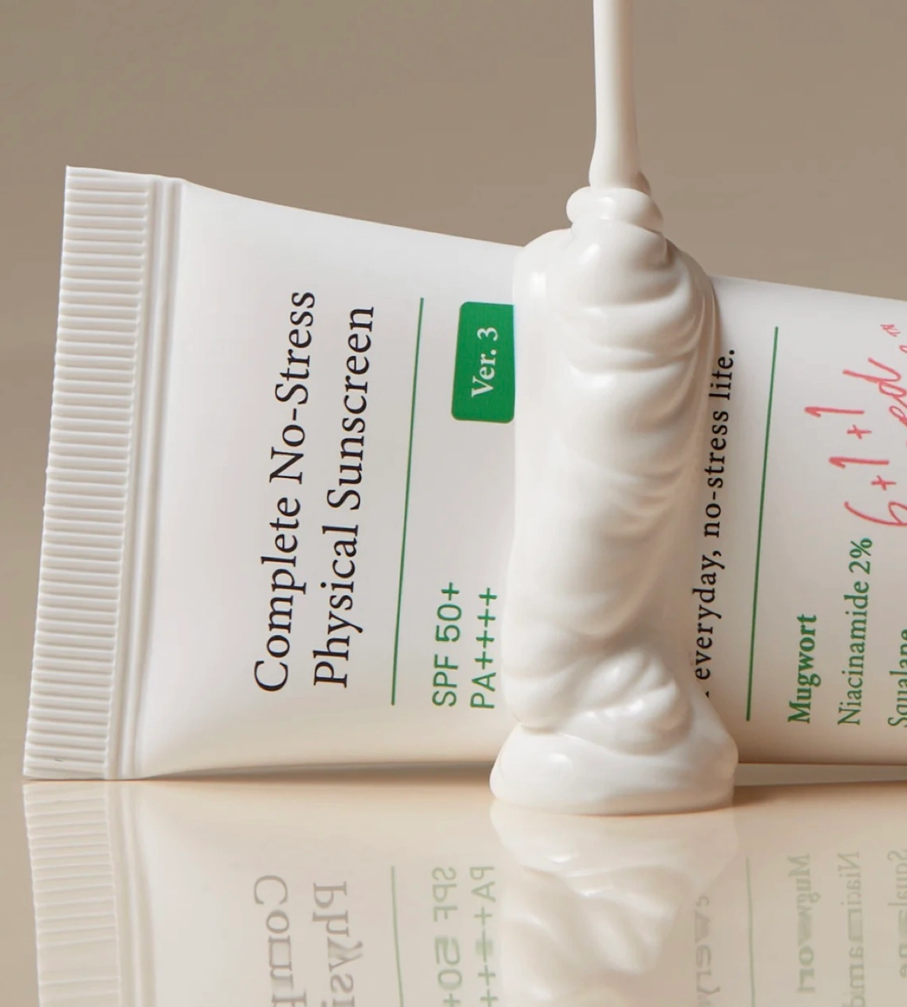 Selling a tube of Axis-Y Complete No-Stress Physical Sunscreen! It's SPF 50+ PA++++ and contains beneficial properties from skin-loving ingredients for an everyday, no-stress life. Contains Mugwort, Niacinamide 2%, and Squalane. It's also vegan!