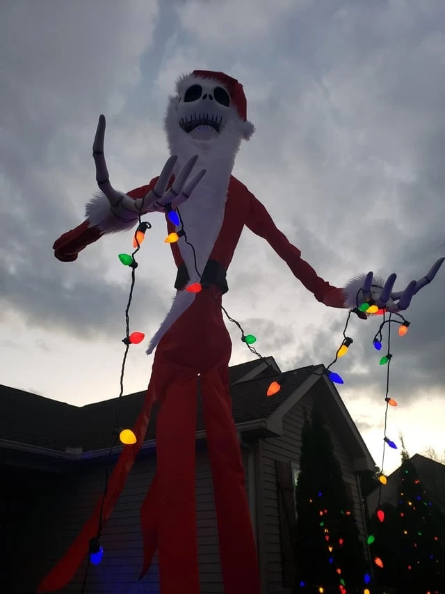High-quality 13-foot Jack Skellington Santa costume. Includes Santa hat, beard and suit. Strong build, well made, and waterproof.Great for outdoor holiday displays. Perfect for fans of the movie to add a unique touch to their Christmas display!
