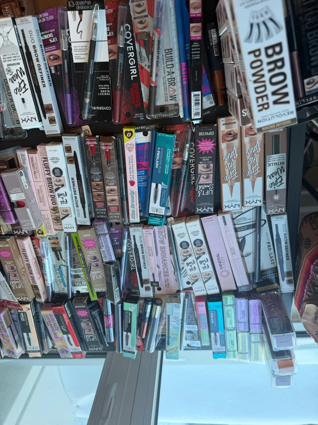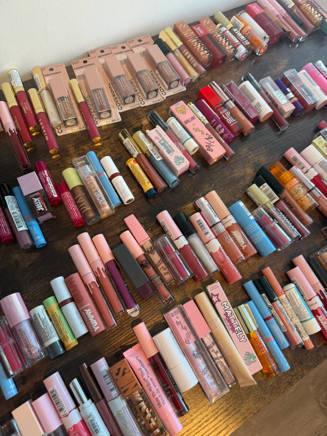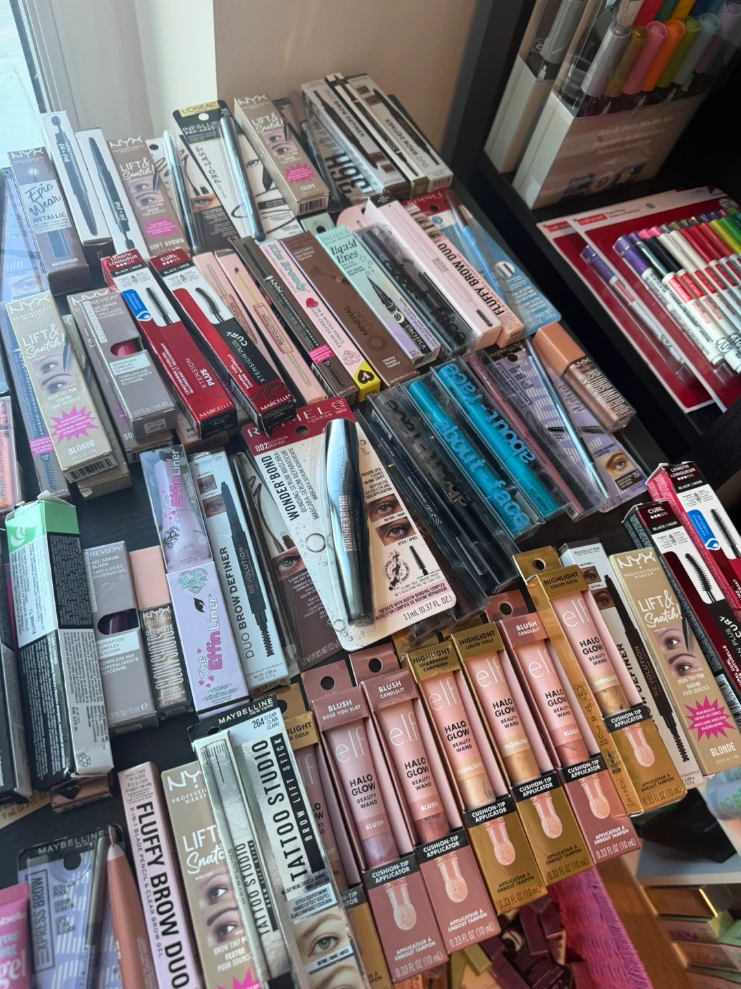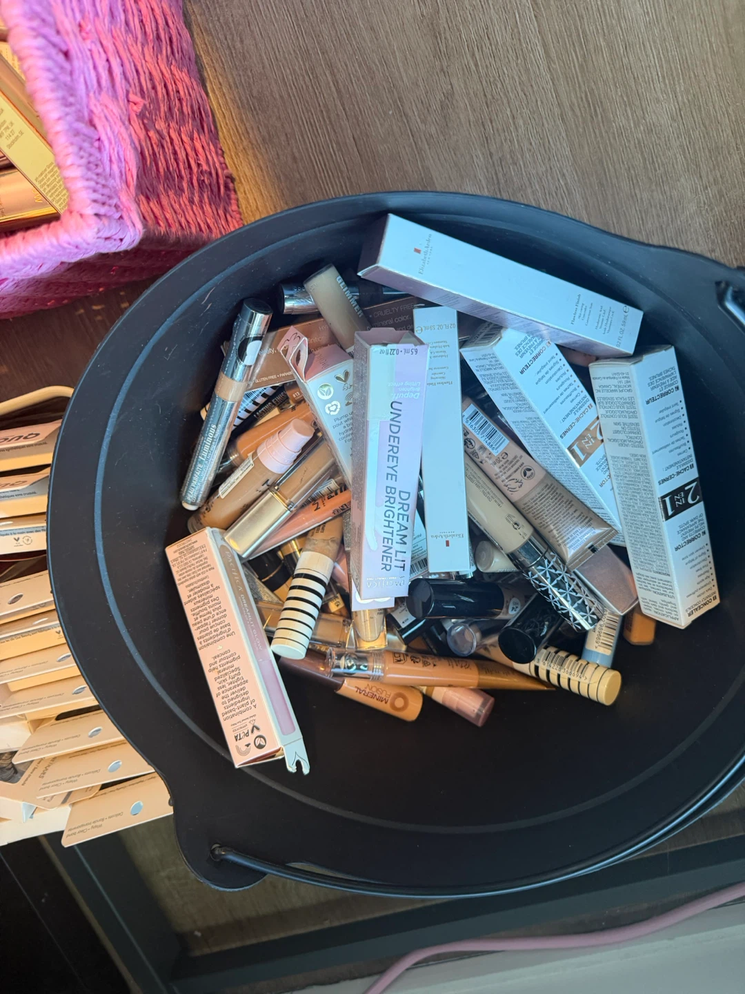 A large collection of makeup items including foundations, BB creams, lipsticks, and blushes from various brands. Includes popular names like NYX, Pacifica, Bobbi Brown, and Covergirl. Most items appear to be full-sized or generous samples. Great for makeup enthusiasts looking to try new products or stock up!