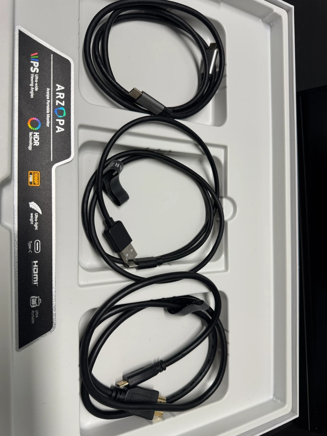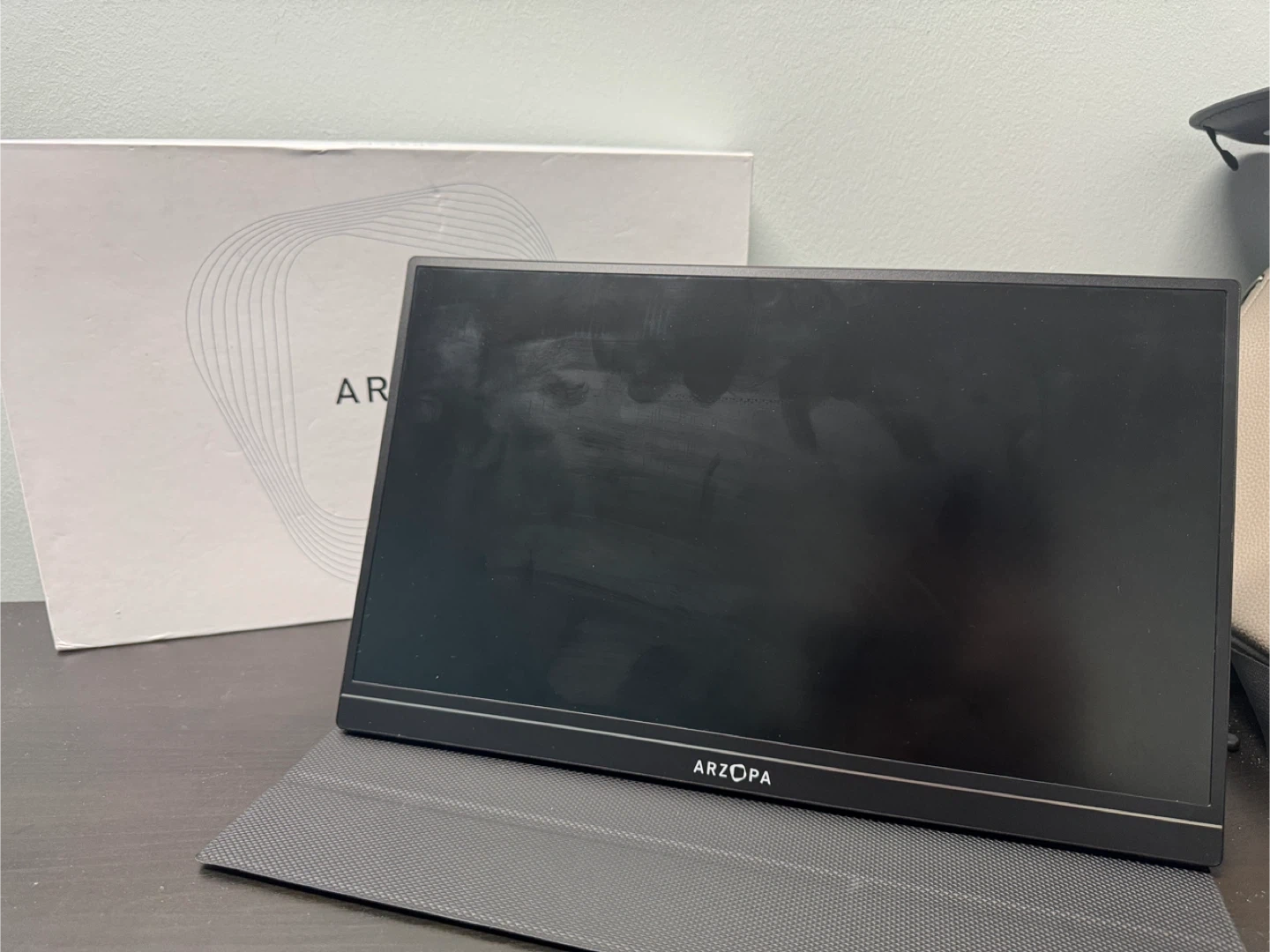 This is an ARZOPA 15.6 inch 1080P portable monitor. It's lightweight and ultra-portable. Includes HDMI and USB-C cables for connectivity.