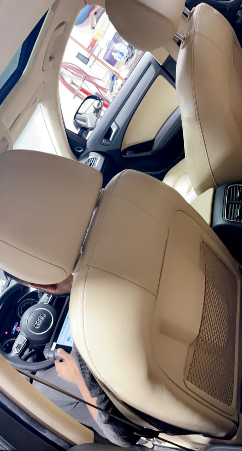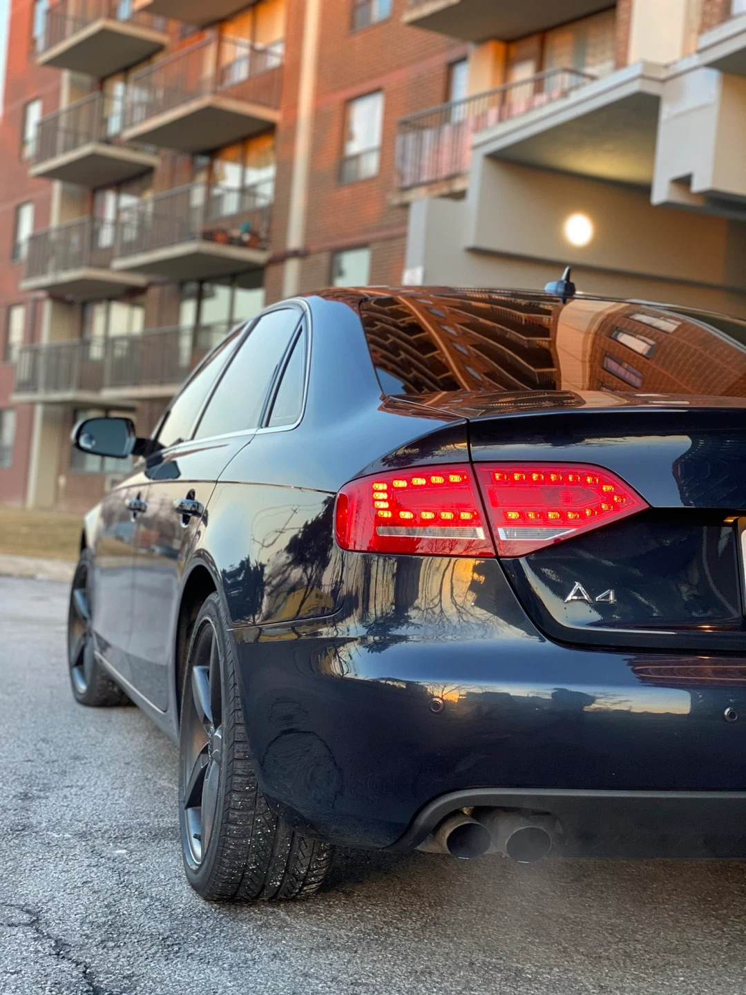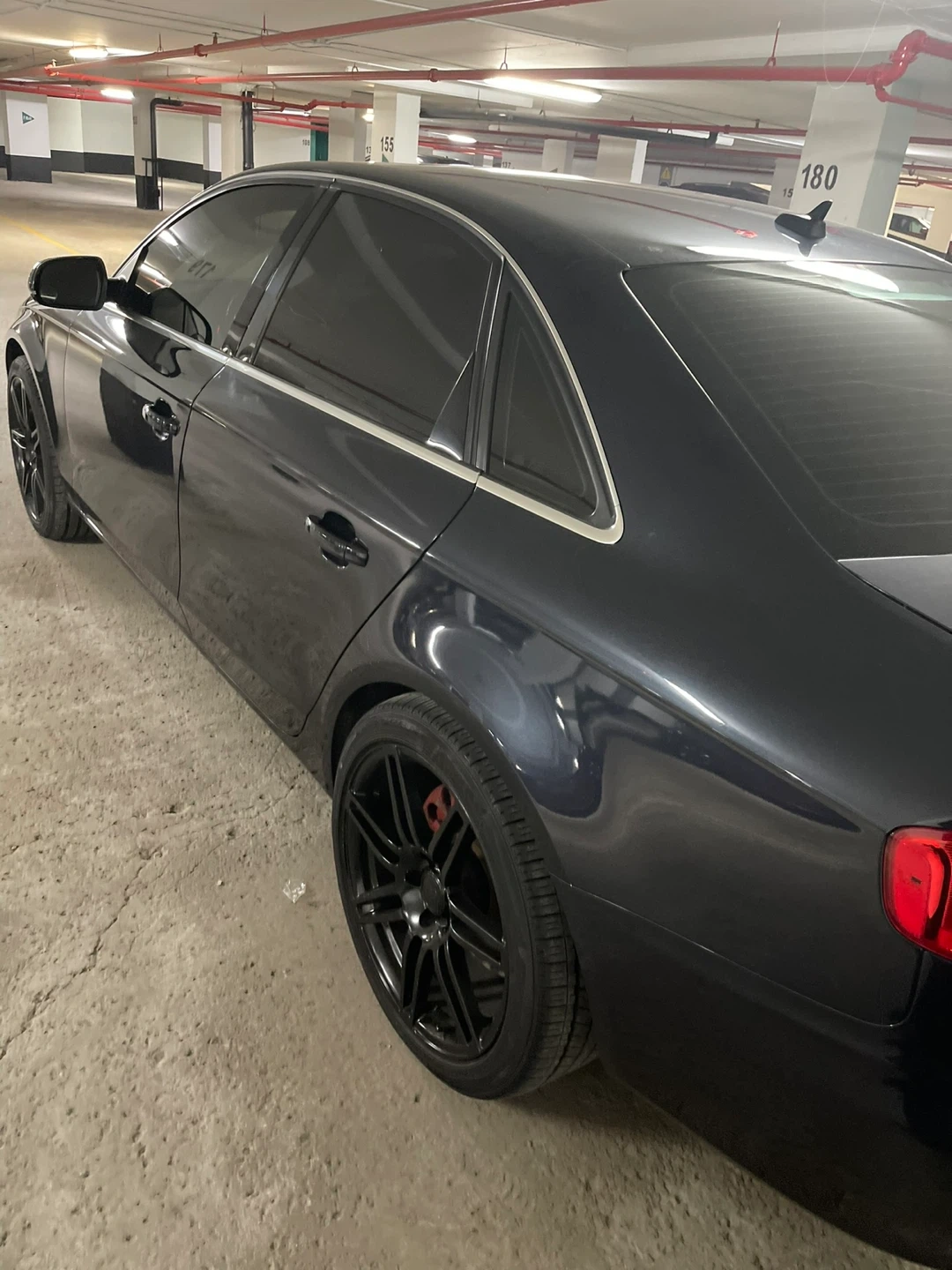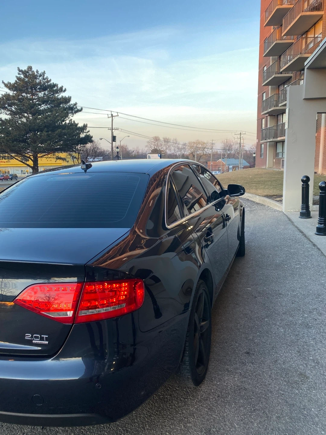 60Selling an Audi A4 sedan. It features a sleek black exterior and a comfortable beige interior. The car is in used condition, but well-maintained.