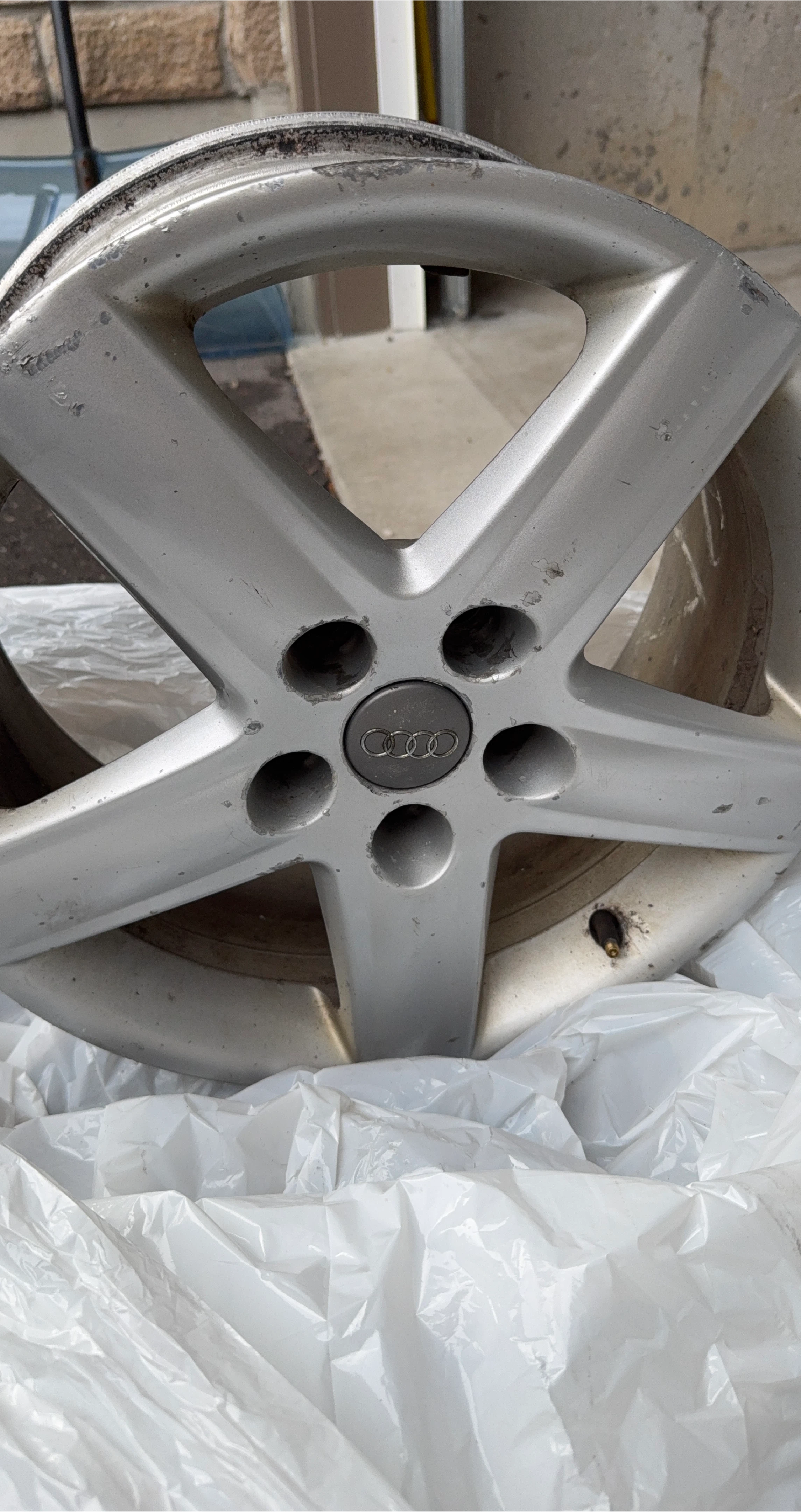 18Selling an Audi alloy wheel. It shows signs of wear and use, as seen in the pictures. Perfect if you need a spare or replacement!