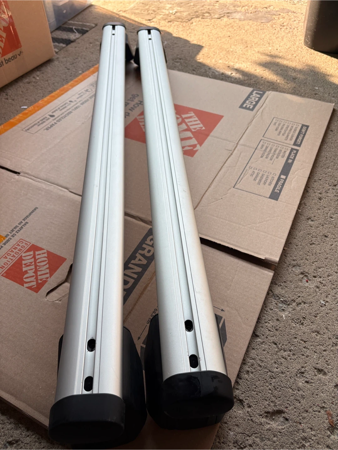 12Selling a set of silver roof rack cross bars. They're in great shape and ready to be used for your next adventure! Perfect for carrying luggage, bikes, or other gear on your vehicle's roof