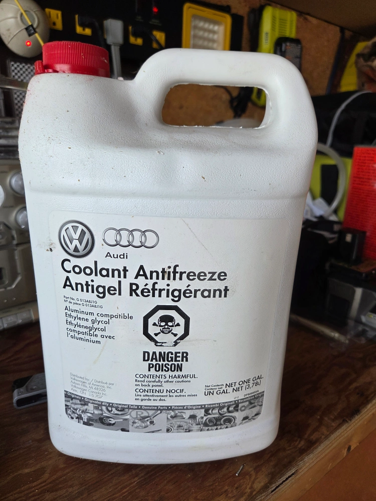 Selling a one-gallon container of Audi/Volkswagen coolant antifreeze. It's compatible with aluminum and contains ethylene glycol. Please handle with care as it is marked as a poison I only used a tiny portion of this and sold my vw no longer needed Free pickup in Bolton