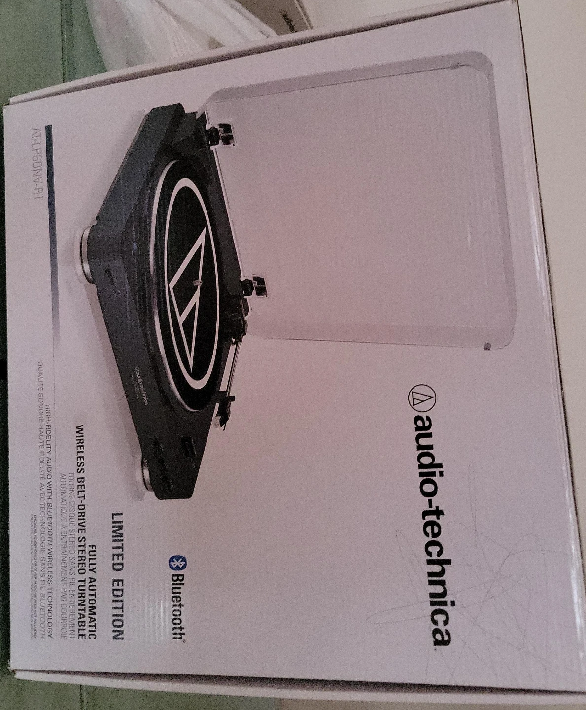 199Selling an Audio-Technica AT-LP60NV-BT fully automatic wireless belt-drive stereo turntable. It's a limited edition model and comes in its original box. Enjoy high-fidelity audio with Bluetooth wireless technology. Perfect for anyone looking for a new turntable! Note: lid is cracked.