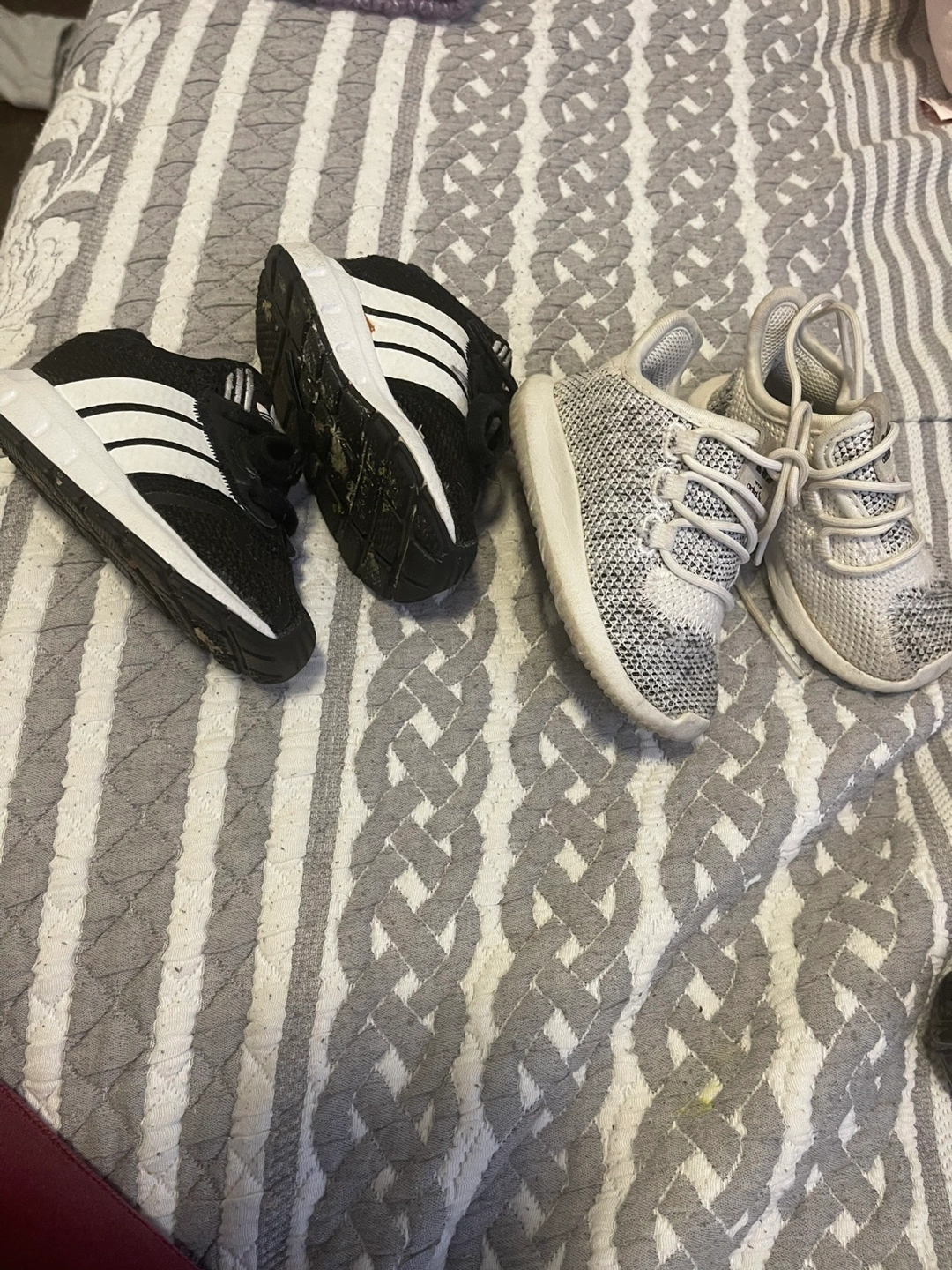 Pair of black Adidas Swift Run and pair of grey Adidas Tubular Shadow toddler shoes. Good used condition. Slight wear. Up to 16 months old