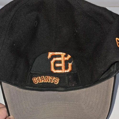 Great condition San Francisco Giants '47 Brand 'Clean Up' style strapback hat. Classic interlocking 'SF' logo on the front, with unique 'GYPO' (Get Your Pitch On) embroidery on the side. Features the '47 logo on the left temple and 'GIANTS' on the adjustable velcro strap. Black with orange embroidery and a gray under-brim. Genuine MLB merchandise, one size fits all. Hand wash only to maintain shape and embroidery.