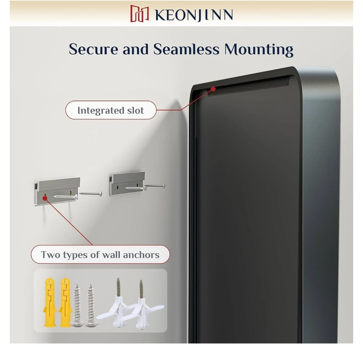 This KEONJINN bathroom mirror features a sturdy aluminum alloy metal frame with a rust-proof and non-deforming design. Its dimensions are 23.6 inches wide by 35.8 inches tall. It's suitable for vanities between 24"-36" wide and offers a modern floating effect with a finely sandblasted finish.