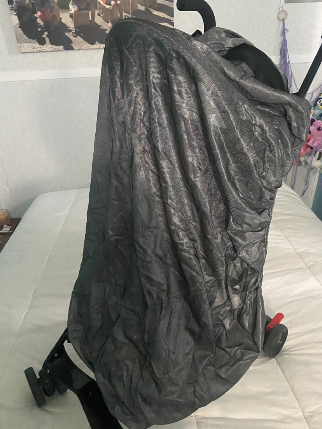 This is a compact baby stroller with a cute elephant pattern. It's lightweight and easy to fold for on-the-go convenience. Perfect for quick trips out and about! Has sun/bug cover. Hardly used.