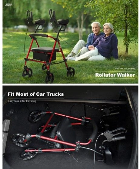 This Invacare rolling walker with a seat and basket is in great condition. There is a large cut on the handle cushion from improper storage, but it can likely be replaced or repaired with glue. Otherwise, it works great. This upright walker allows users to walk and stand up, promoting proper posture and relieving back, shoulder, and neck pain. It enables you to look forward instead of down, making it safer and more comfortable. This folding rollator for seniors helps increase independence and mobility, giving you the confidence to walk further.