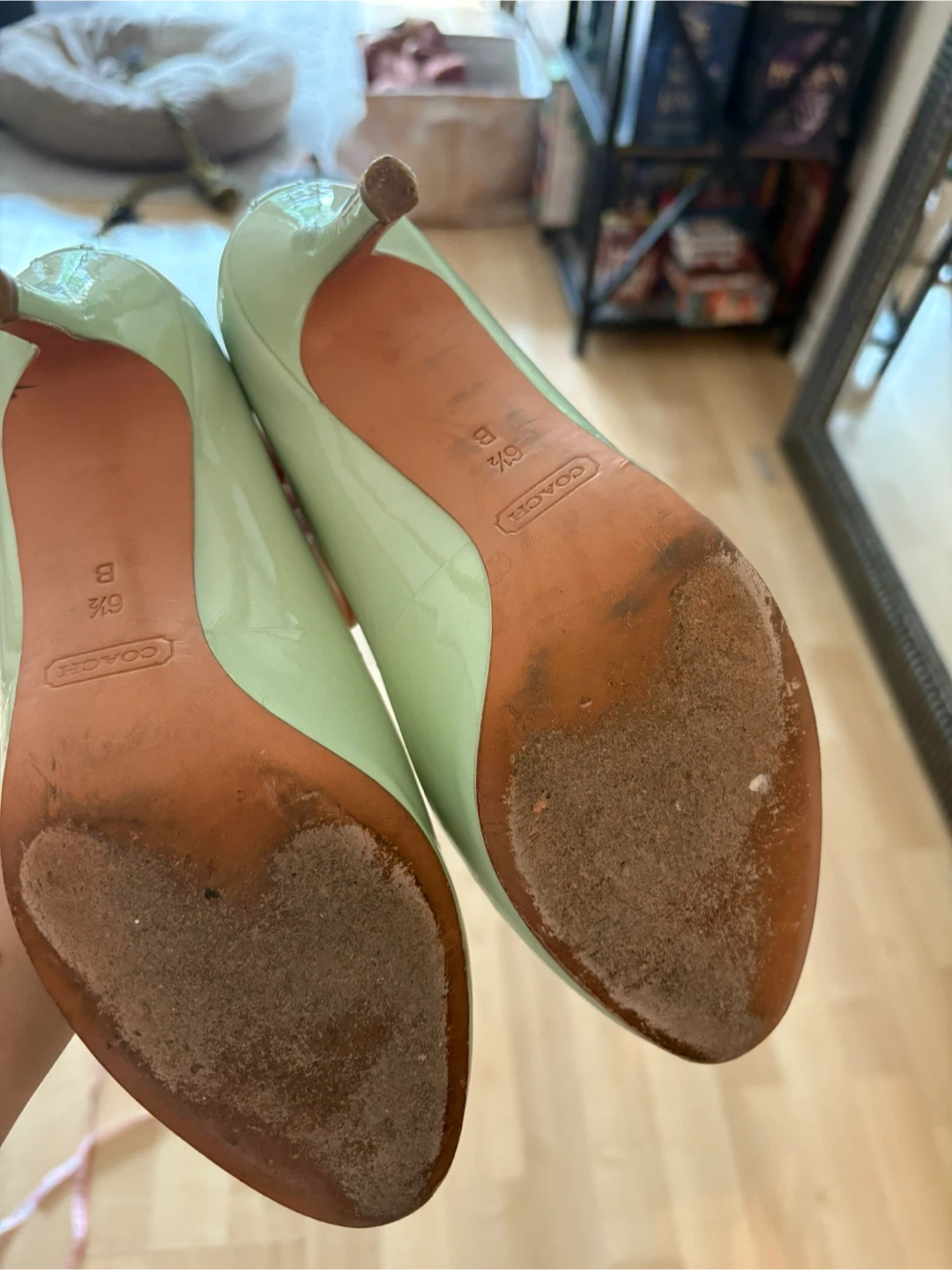 Show allAuthentic Coach Nala Patent Mint Heels - size 6.5