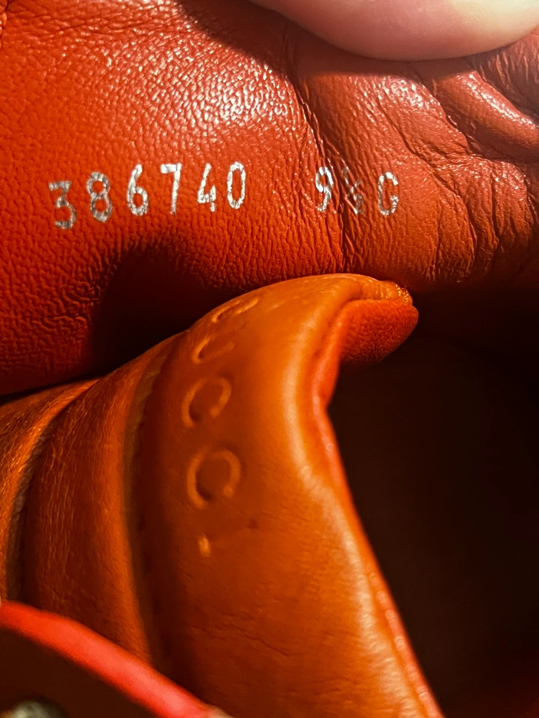 1000+Authentic! Gucci GG Supreme high-top sneakers in orange leather with monogram coated canvas side panels and a white rubber sole. Retail: $1100+ Condition: 9/10 tiny scratch on the front (refer to photos) but still in very good condition Style: contemporary, designer, casual, maximalist, sharp, polished Tags: luxury, monogram, Gucci, GG, leather trainers, size 9.5 leather sneakers, orange leather, boutique