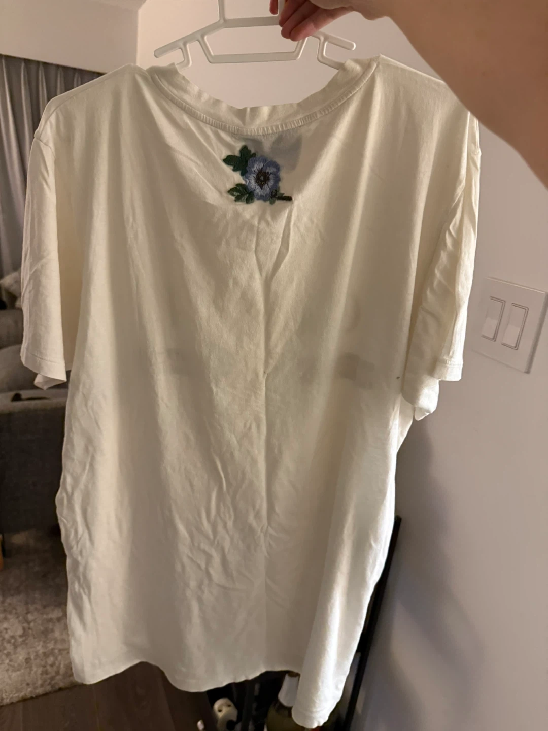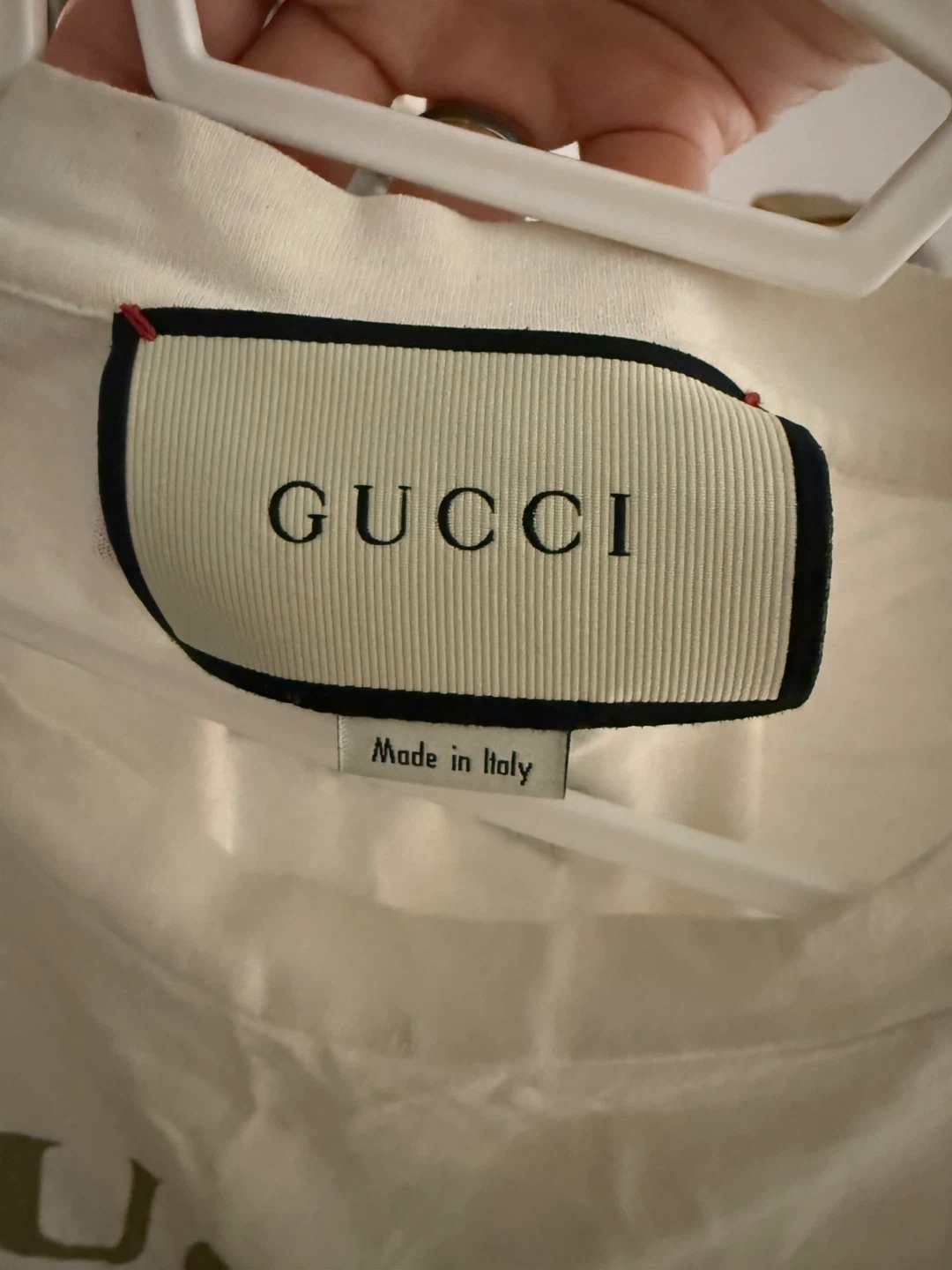 17Selling a Gucci T-shirt in size small. It is a white colour with the Gucci logo on the front and a floral design on the back. Made in Italy