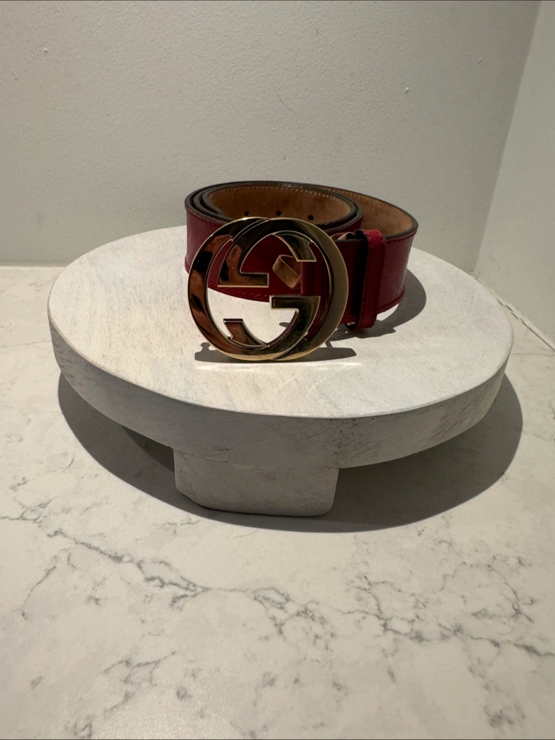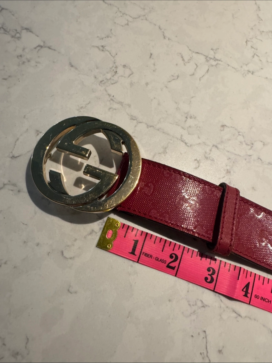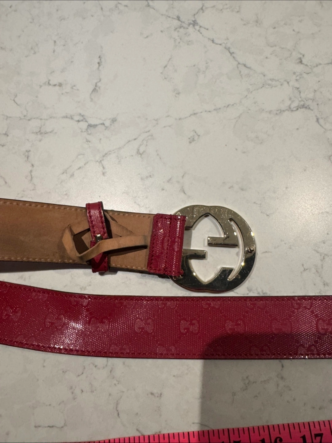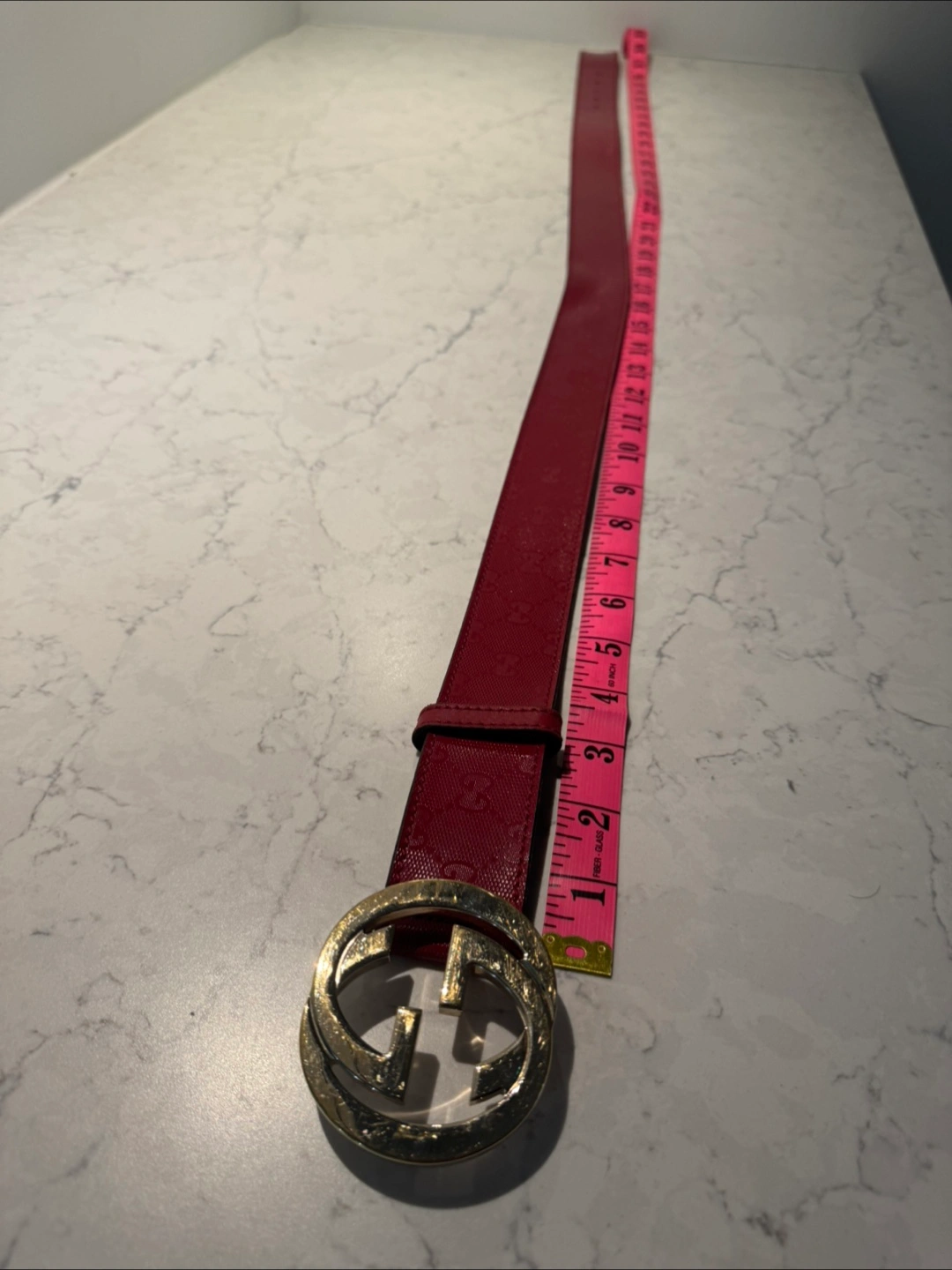 Authentic Red Gucci belt with double G emblem Measures 39 inches long Comes with dust bag Unisex