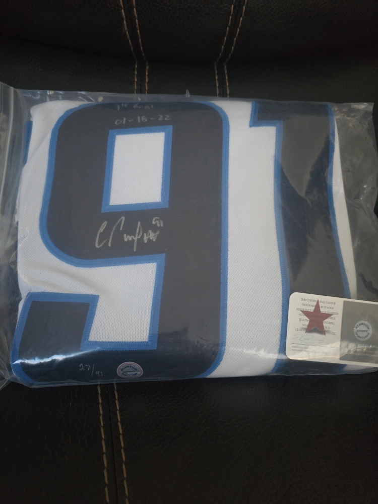 10Selling a Winnipeg Jets jersey autographed by Cole Perfetti! It's number 91 and commemorates his 1st goal on 2022 January 16. It's number 27 out of 91 made. A certificate of authenticity is included