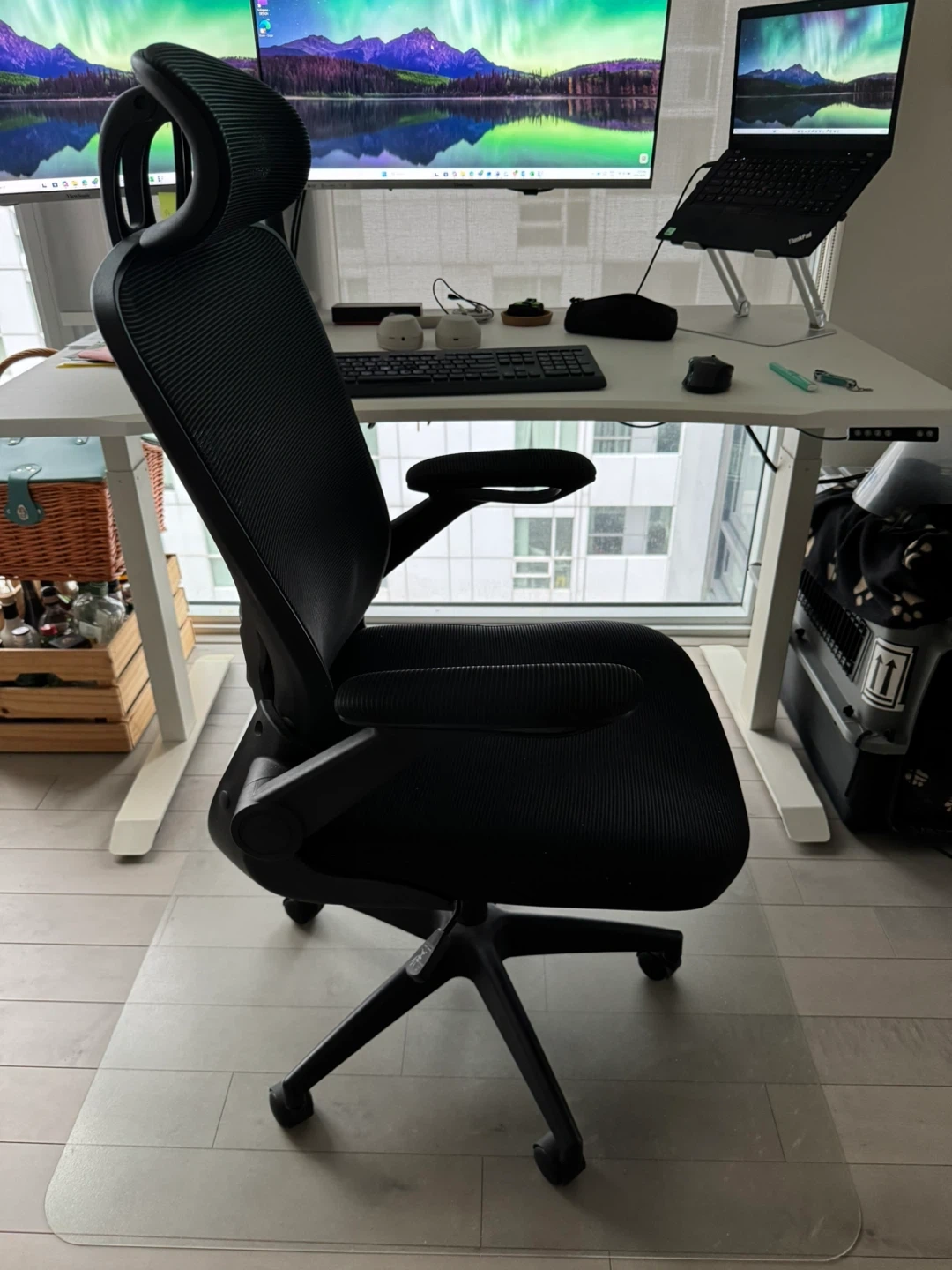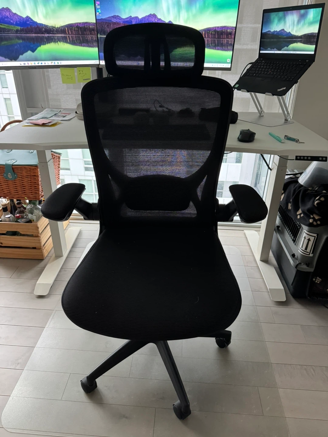 Selling a comfortable ergonomic office chair in black. Adjustable Armrests & Headrest It's in great condition and ready to improve your workspace! Perfect for long hours of work or gaming