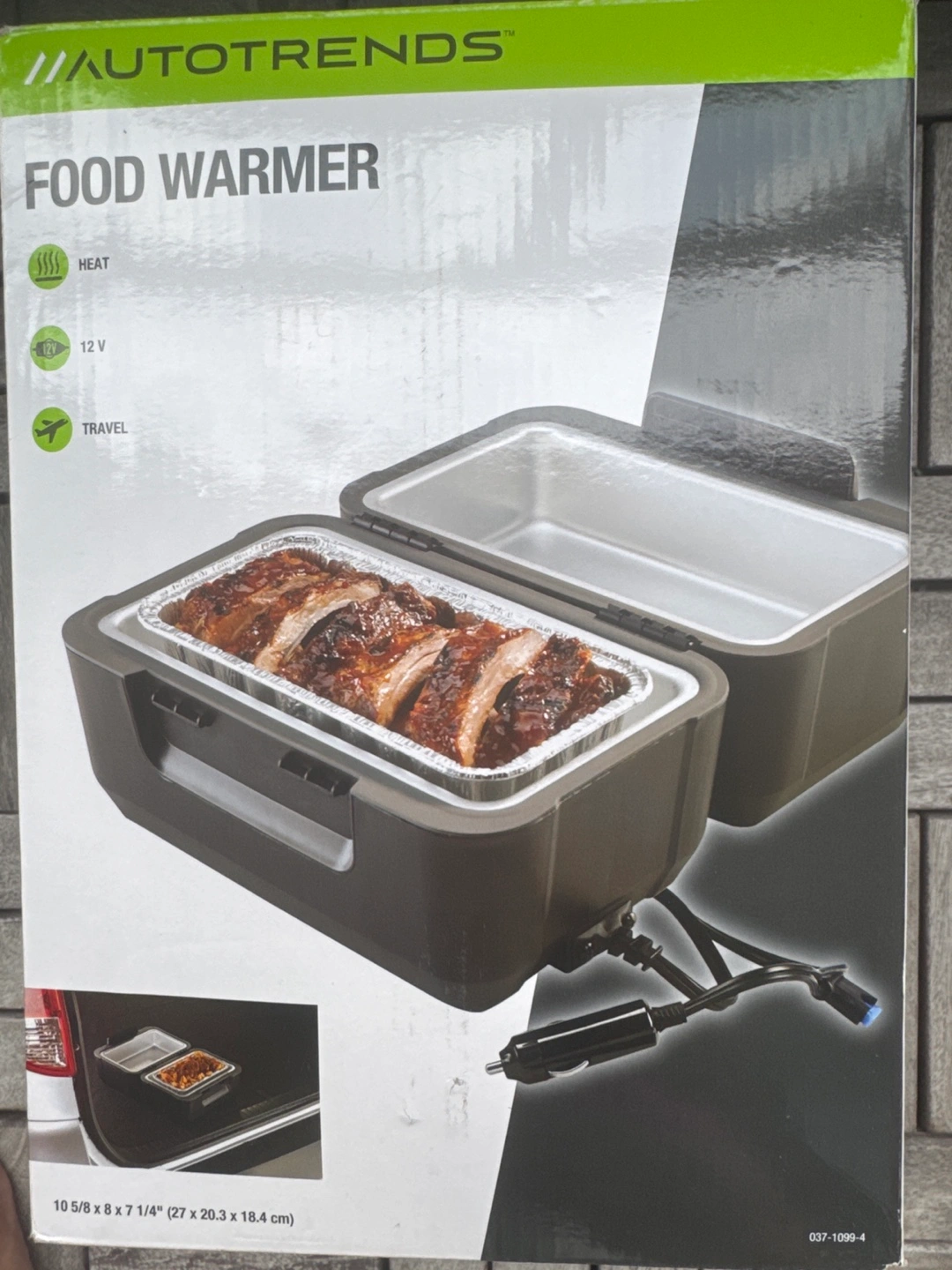5Keep your food warm on the go with this AutoTrends food warmer! It's perfect for travel and plugs into a 12V outlet. The dimensions are 10 5/8 x 8 x 7 1/4" (27 x 20.3 x 18.4 cm)