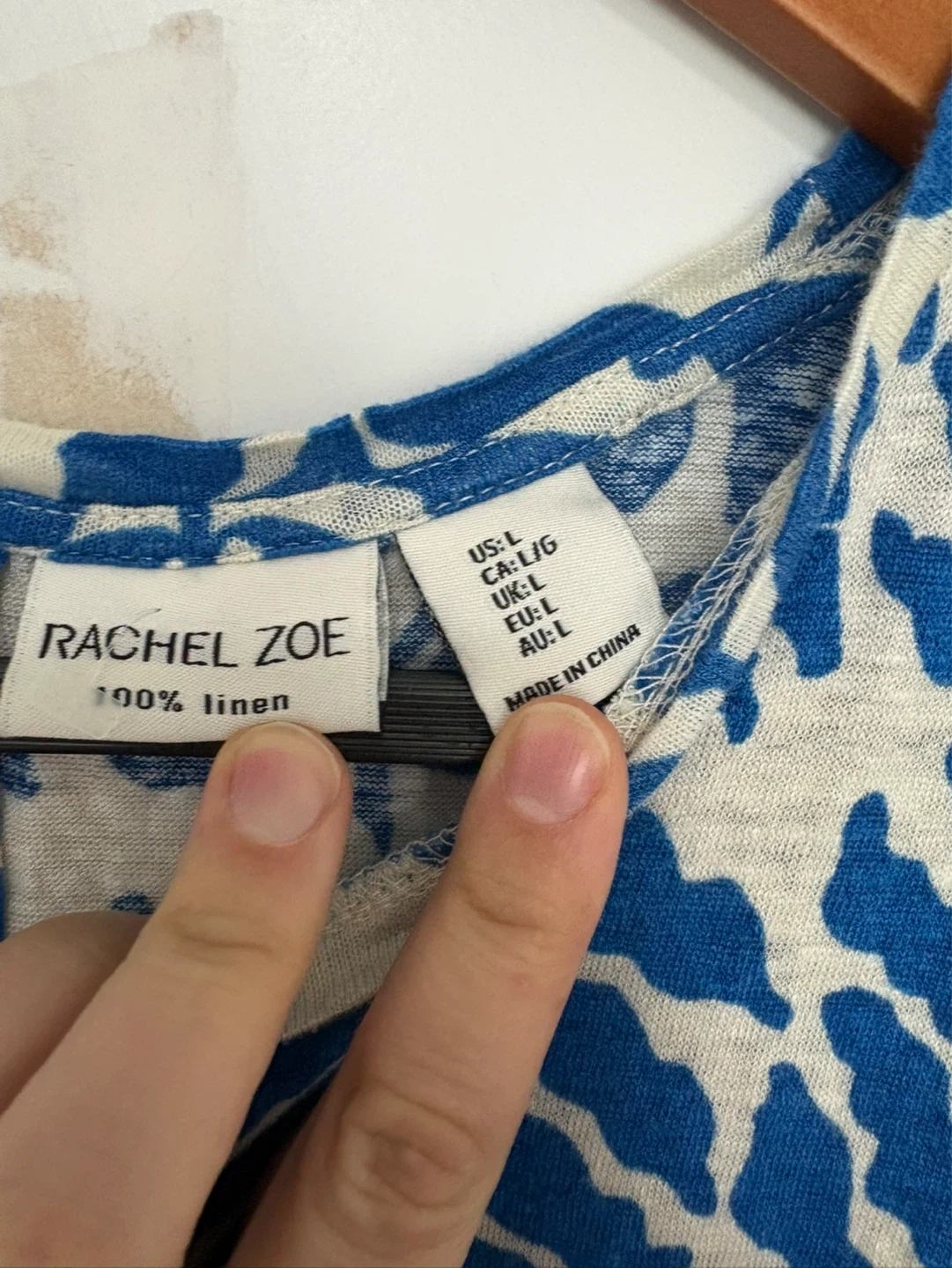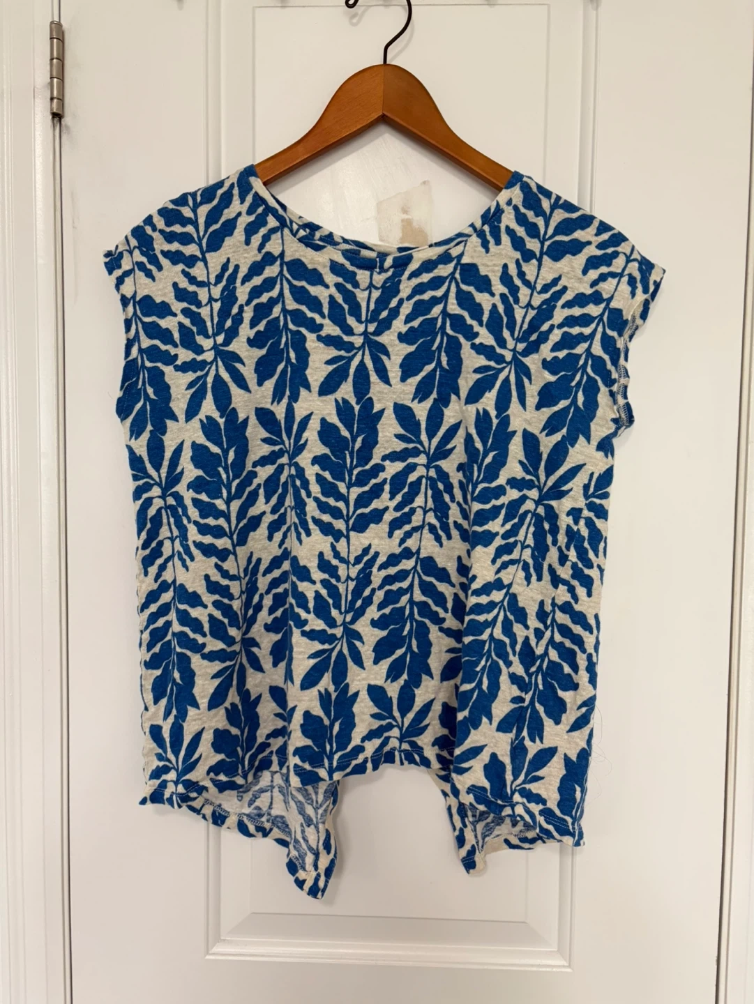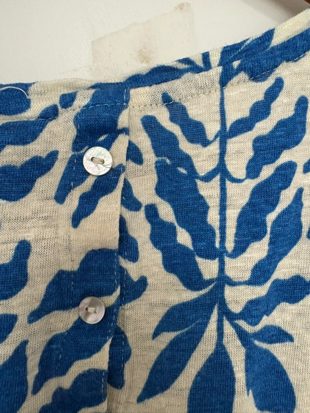 Linen top size women’s large. Great condition! Button closure at the back. Blue and cream coloured pattern. See my other linen tops! Pick up near Sherbourne and Adelaide st east or sometimes at some TTC stations.