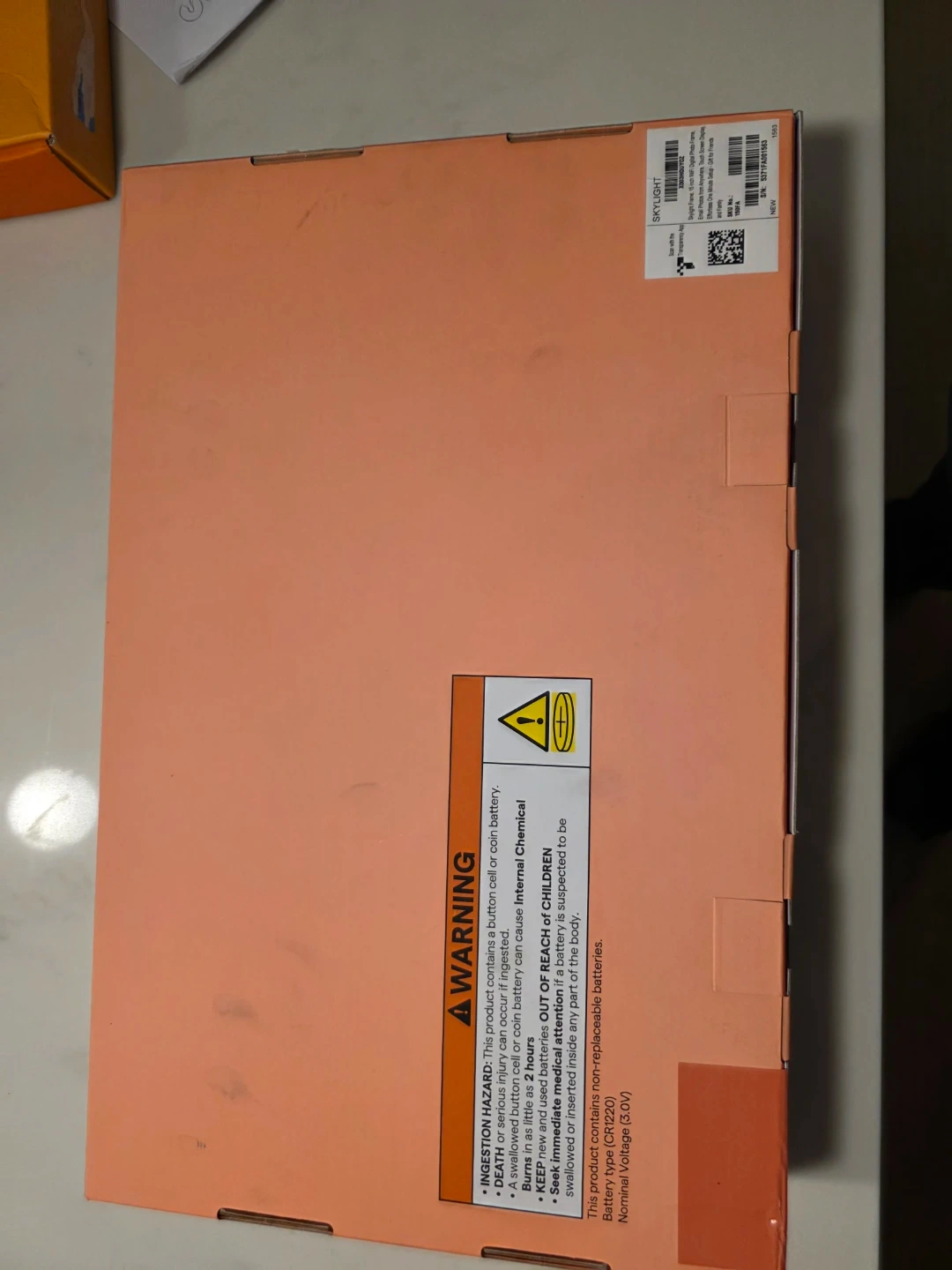 Skylight Frame digital photo frame. It's great for displaying your favourite memories. The frame has a battery type of CR2020 and a nominal voltage of 3.0V. Perfect for gifting!