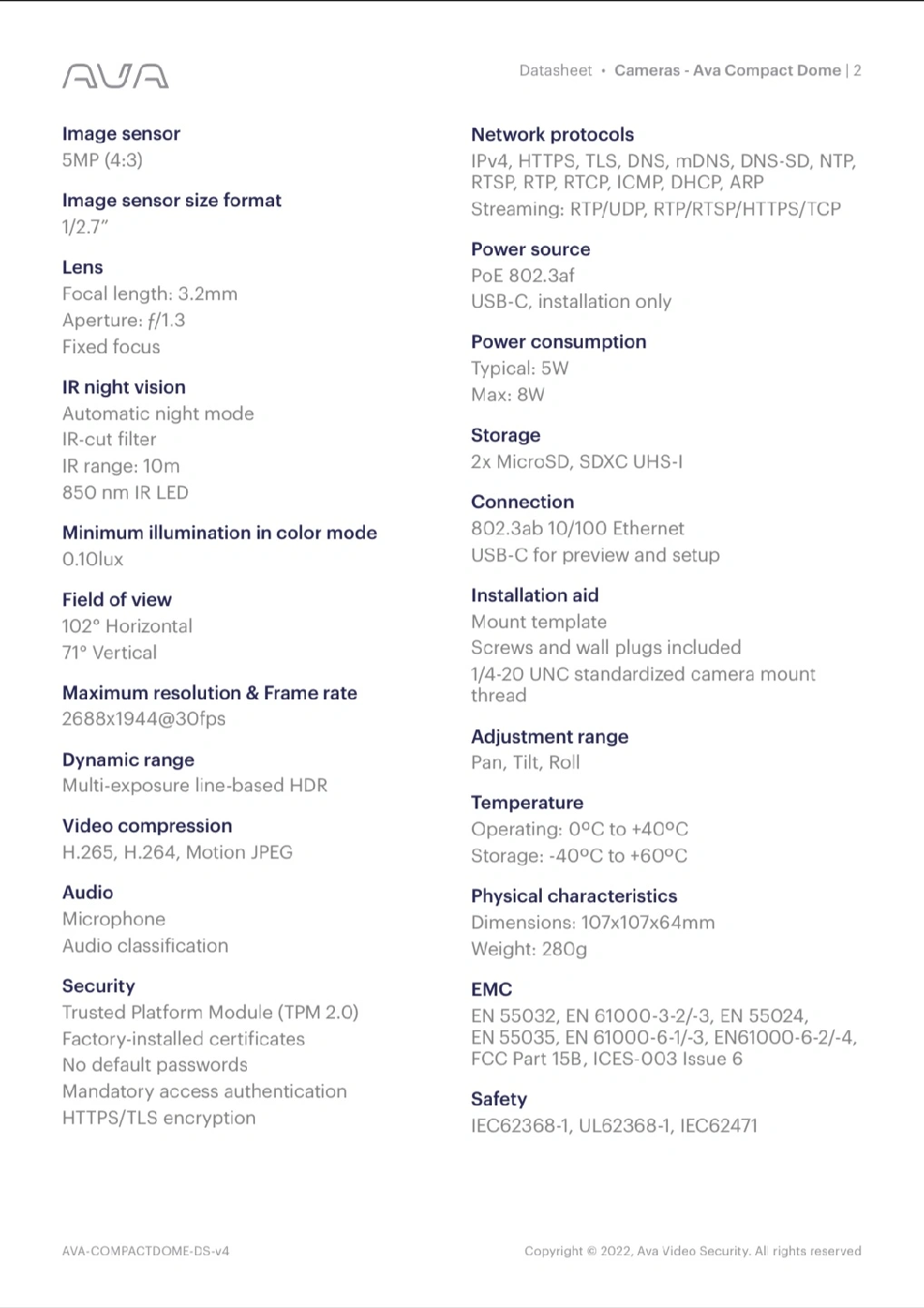 10IP Camera. AVA Compact Dome security camera. works with ALTA cloud or ONVIF local video monitoring system. three available. asking 50$ each