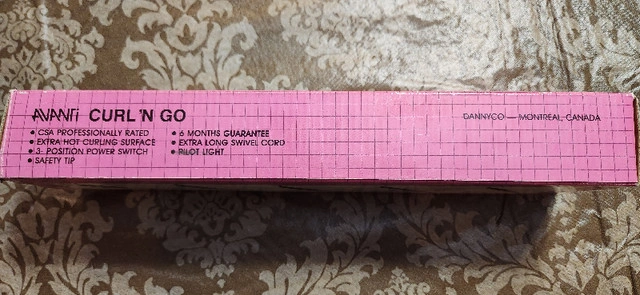 Avanti Curl 'N Go 19mm Curling Iron (Model #619) Brand new (never used) Avanti Curl 'N Go 19mm Curling Iron exclusively sold by hair professionals. Features: - extra hot curling surface - 3-position power switch - kickstand and safety tip - extra long swivel cord (8 feet) - pilot light Asking $20