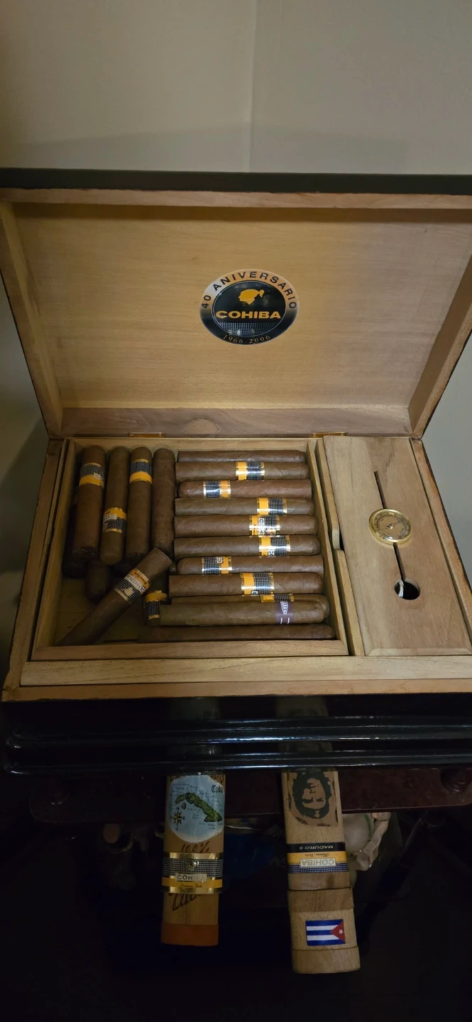 Buy & SellCohiba 40th Anniversary HumidorCohiba 40th Anniversary Humidor$300Cohiba 40th Aniversario humidor, celebrating 1966-2006. Includes a hygrometer and space for multiple cigars. This box is a collector's item.WHERE TO MEETGreenwood CrView MapSELLERverified780760Clearview600 reviews0 chats·1 favorites·10 viewsSEND CHAT TO SELLERHi 780760! I’m interested in your listing.Hi 780760! I’m interested in your listing.Get the Karrot app to chatSign In to chat