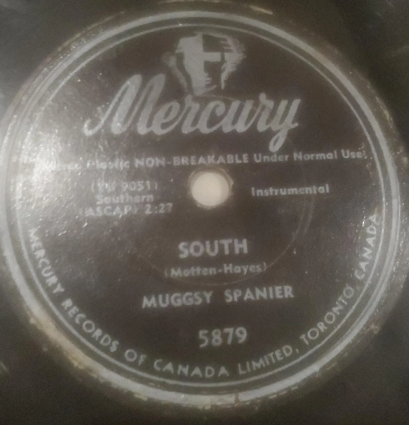 Selling a Mercury record by Muggsy Spanier, titled "South". The record is from Mercury Records of Canada Limited, Toronto. It's an instrumental piece. The record number is 5879.
