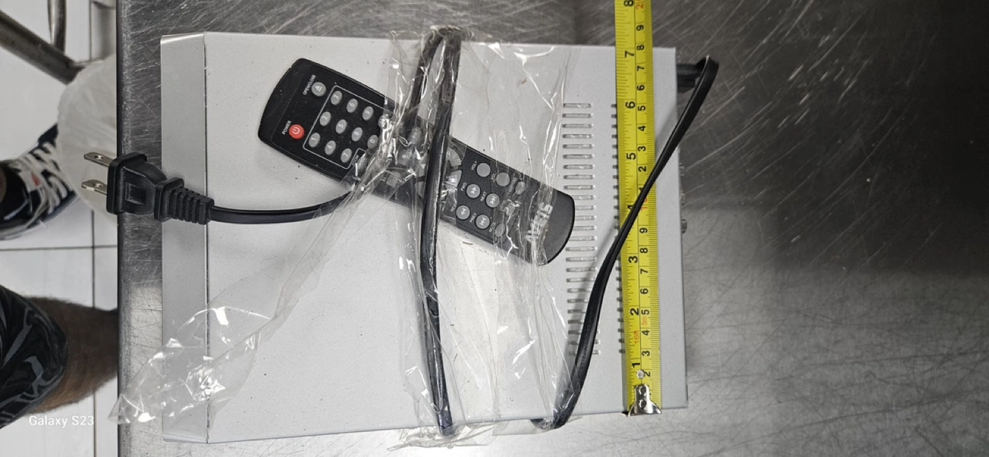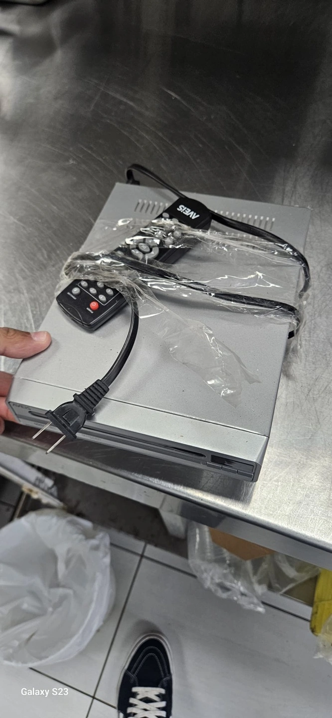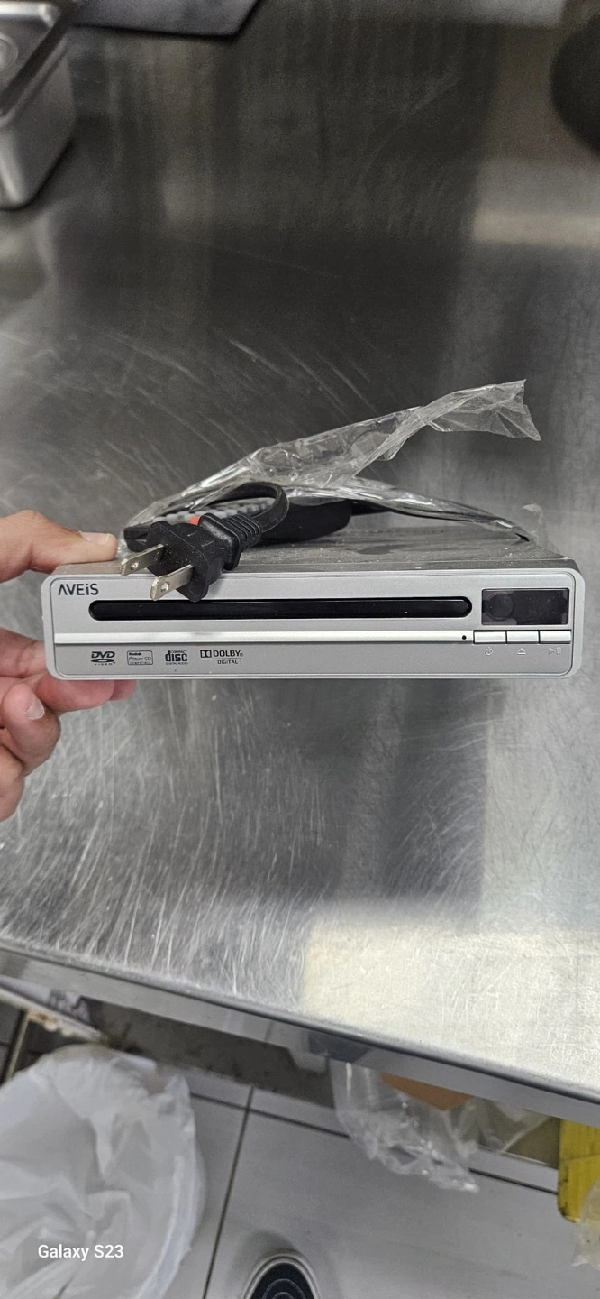 46DVD player with remote. Includes power cord. Has some scratches on the top.
