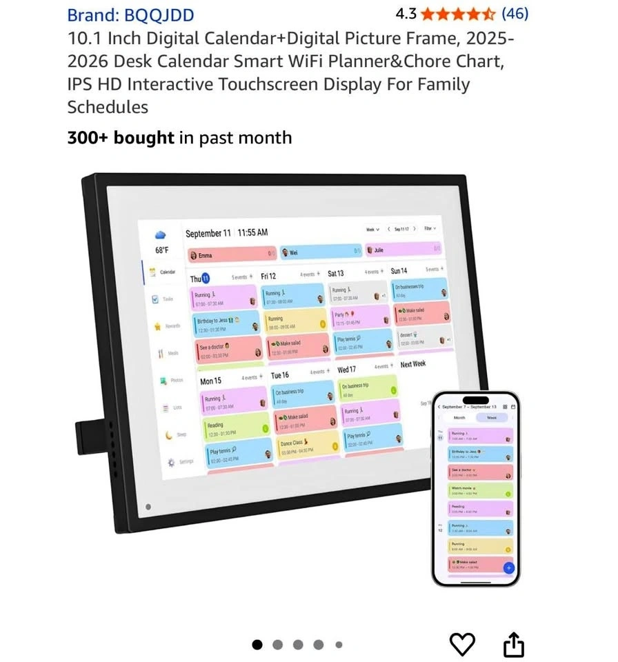 Stay organized with an interactive digital calendar for the whole family. Assign colors, track daily/weekly/monthly schedules.